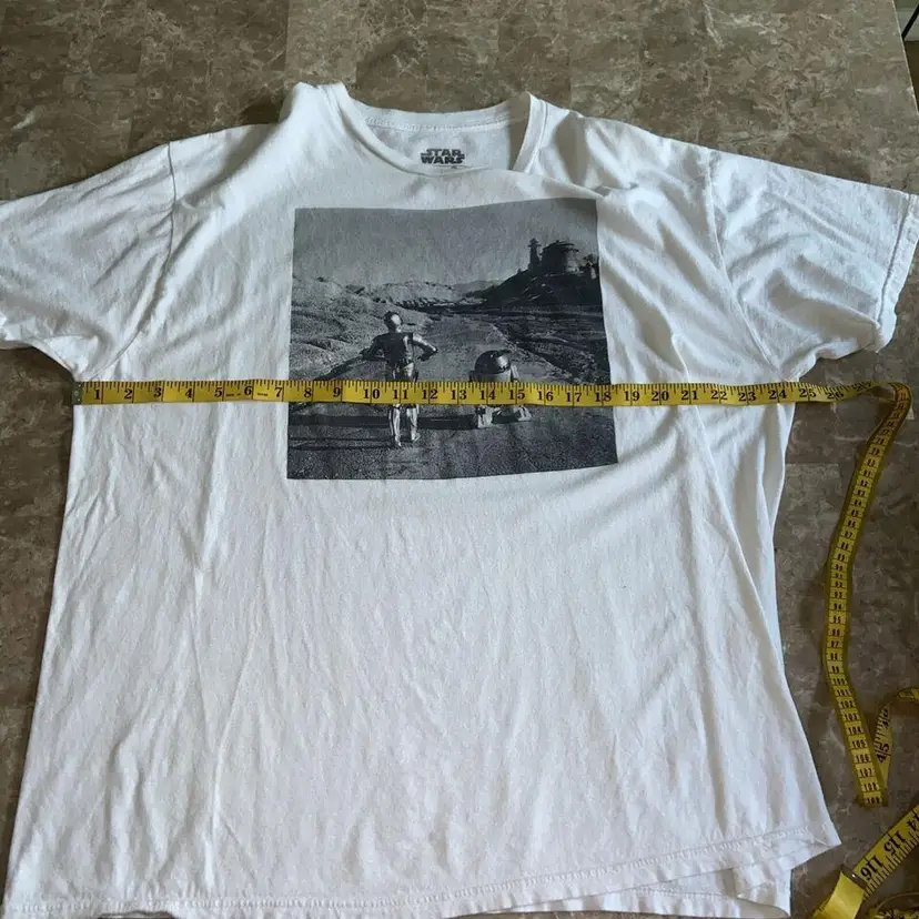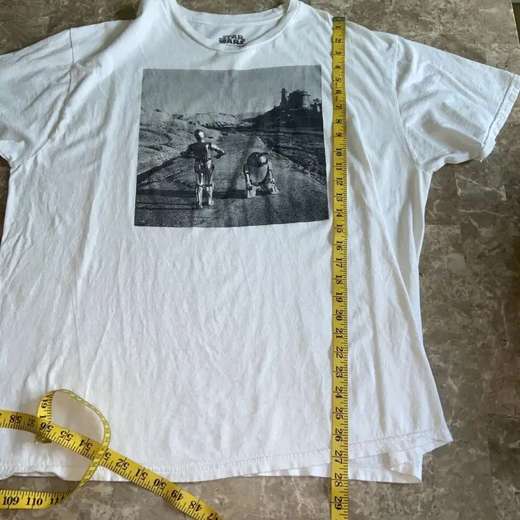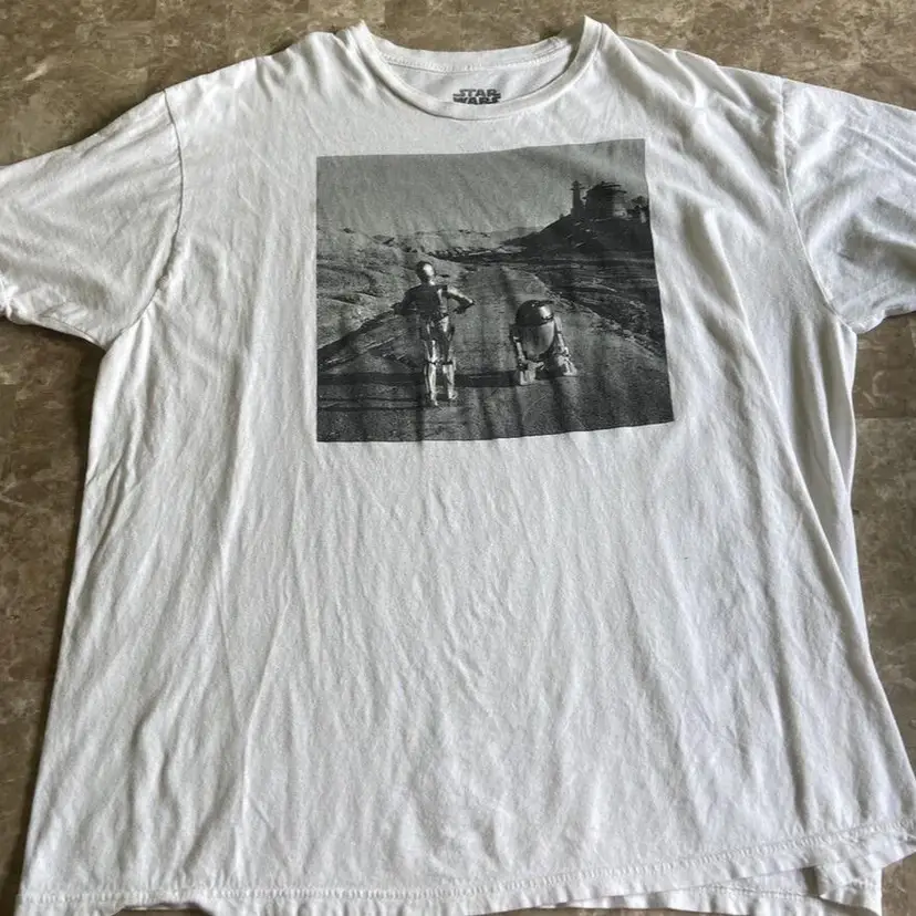 Show off your love for Star Wars with this R2D2 and C3P0 themed t-shirt! Featuring a solid pattern with a white base, this shirt is made from 100% cotton for a comfortable fit. The crew neck and short sleeves make it perfect for casual wear, whether you're at home or out with friends. This shirt comes in a 2XL size and is perfect for any fan of the Star Wars franchise. The design features the beloved droids on a journey through Alderon, making it the perfect addition to your wardrobe. Get ready to show off your Star Wars pride with this amazing t-shirt!