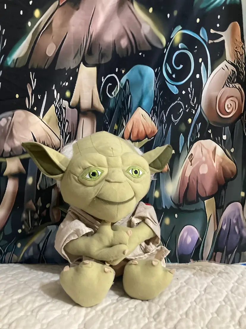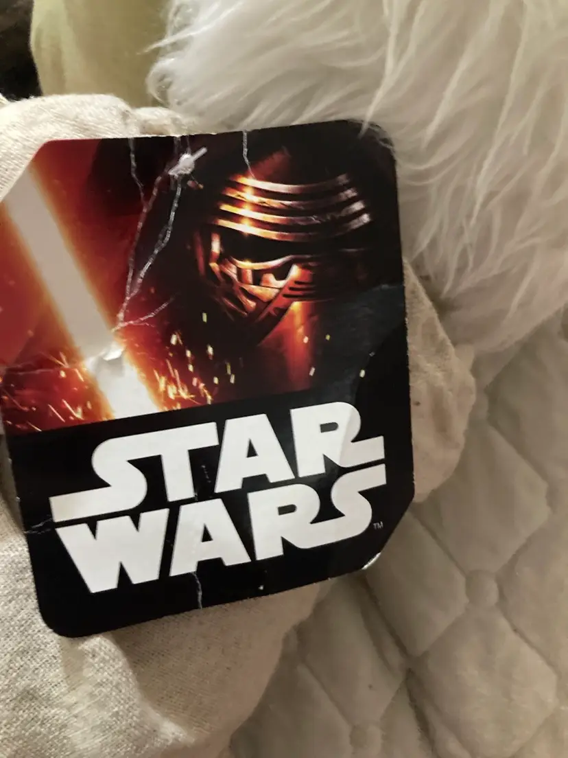 This is an 18 inch Yoda Star Wars plush with the tag steel attached. There is a rip in the tag. He’s super cute super cuddly.