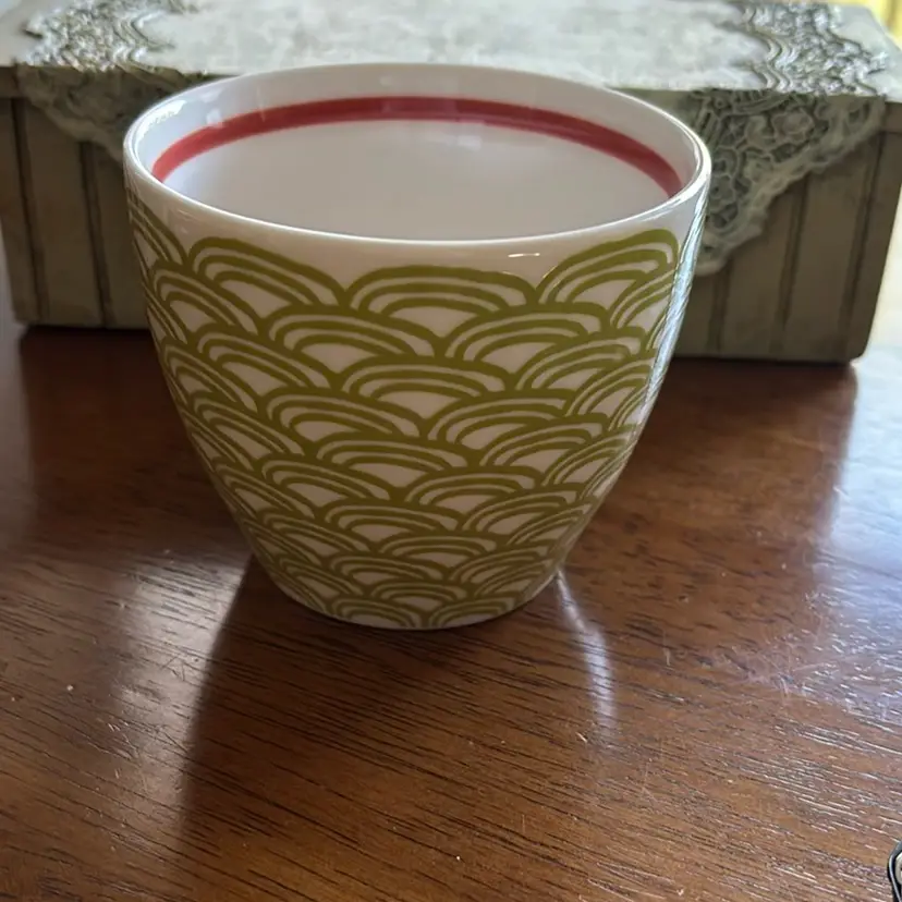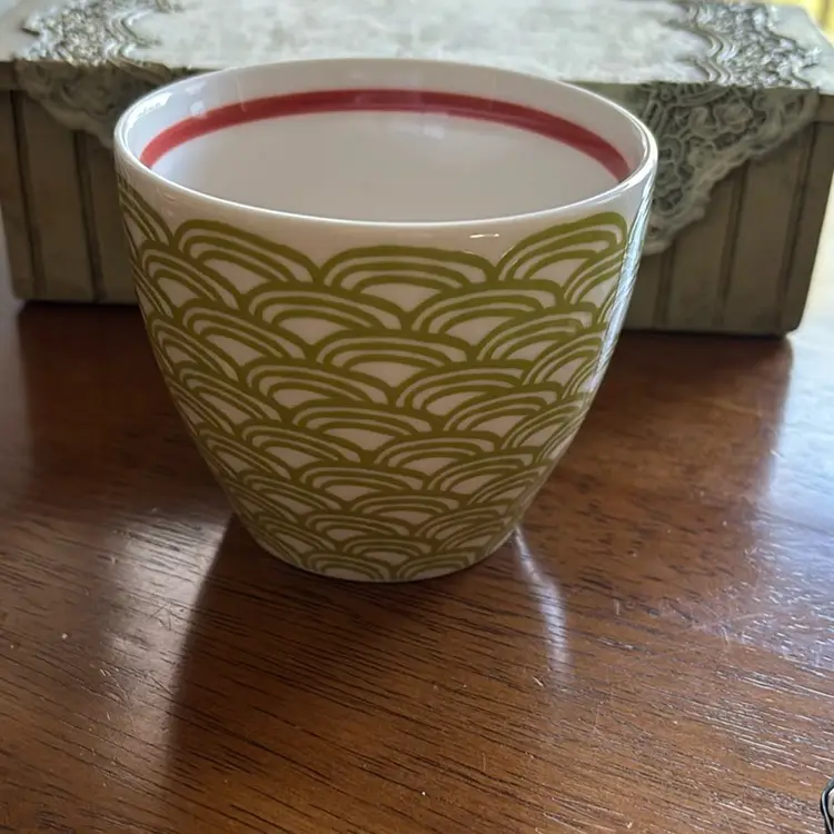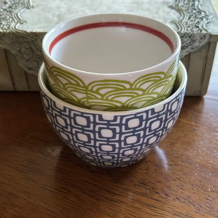 09 Starbucks 2 piece nesting set of cups. No chips or cracks. Measures 3” and 2.5”. Used for prep bowls, no handle mugs or soup cup.
