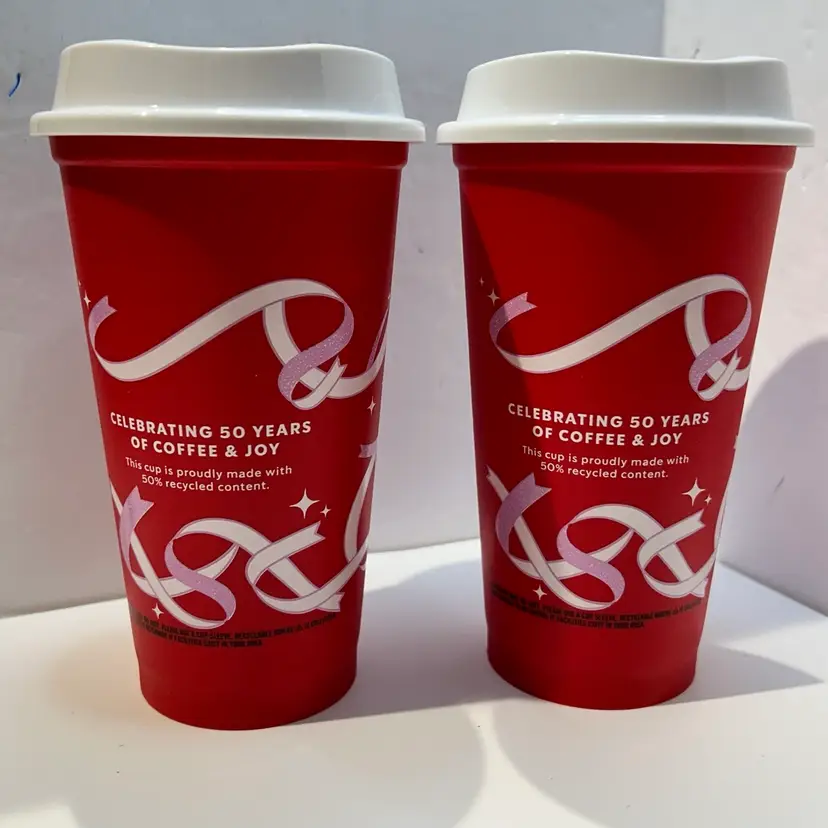 The cups feature a contemporary design with a red color and are suitable for hot beverages. The set includes two cups and is perfect for teens, adults, and kids. These reusable cups are perfect for holiday-themed occasions and are a great addition to your glassware collection.