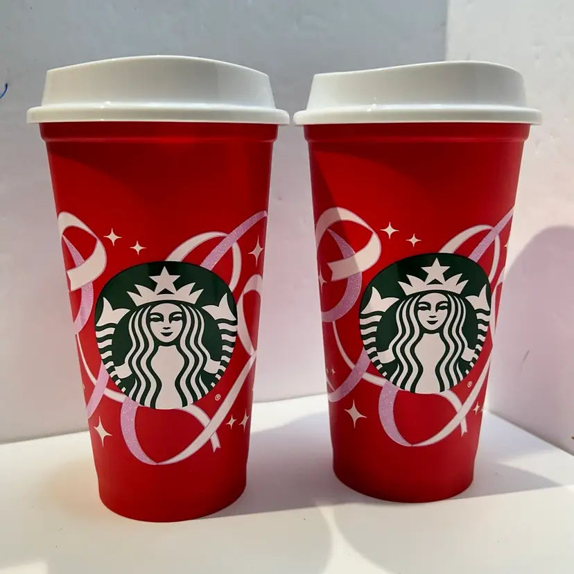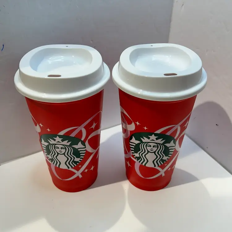 Get your caffeine fix with this set of four Starbucks Reusable Cups Grande. With a capacity of 16 oz., these round-shaped cups are perfect for all occasions. The cups come with a lid and are made of durable plastic material, making them stackable and microwave and dishwasher safe.