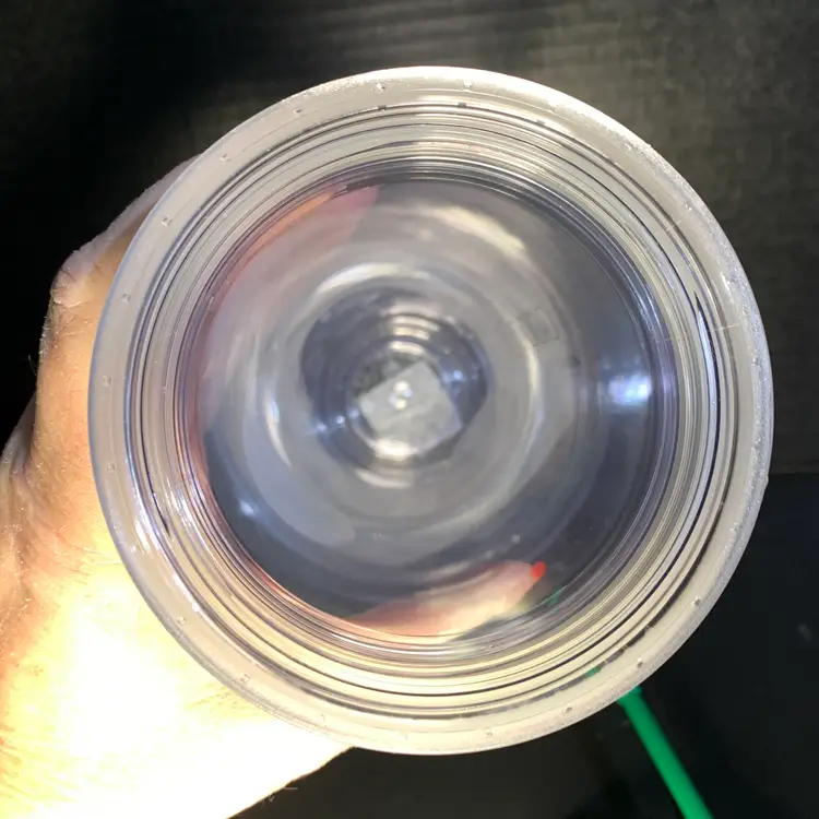 This is in good condition. There is some surface scratches as shown in the photos. Measures 4 inches wide and 8 3/4 inches tall not including the straw. Weighs 12 ounces. If the actual postage ends up being less than what you paid, you will be refunded for anything over one dollar.