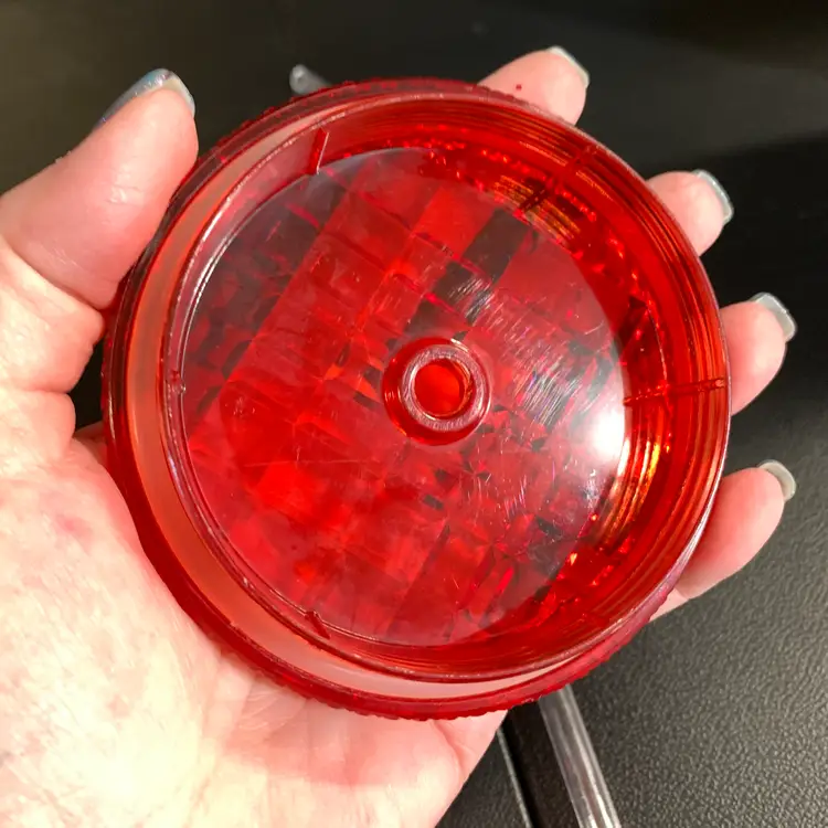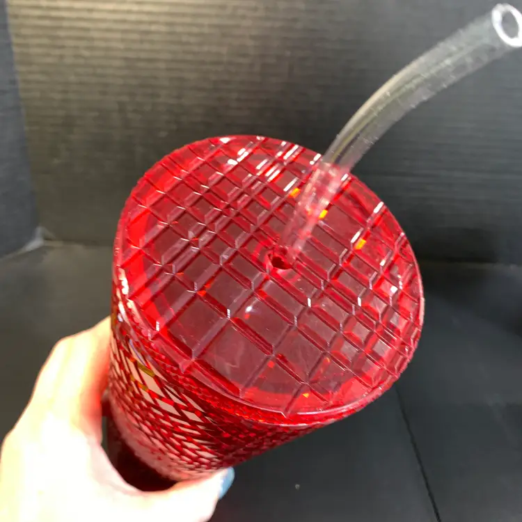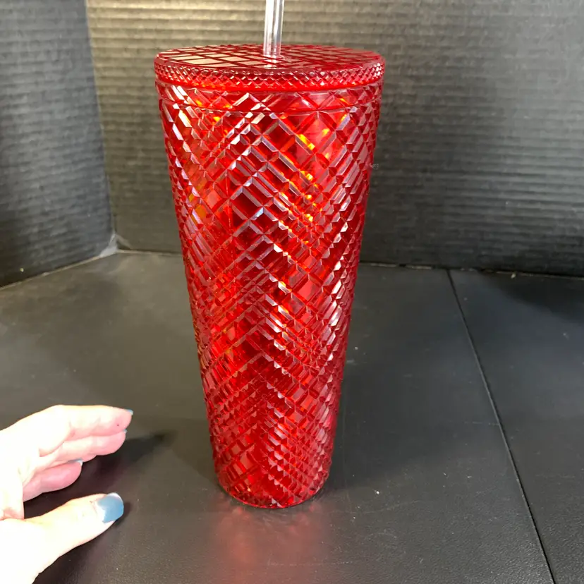 This is in good condition. Measures 3 3/4 inches wide and 9 inches tall not including the straw. Weighs 14 ounces. If the actual postage ends up being less than what you paid, you will be refunded for anything over one dollar.