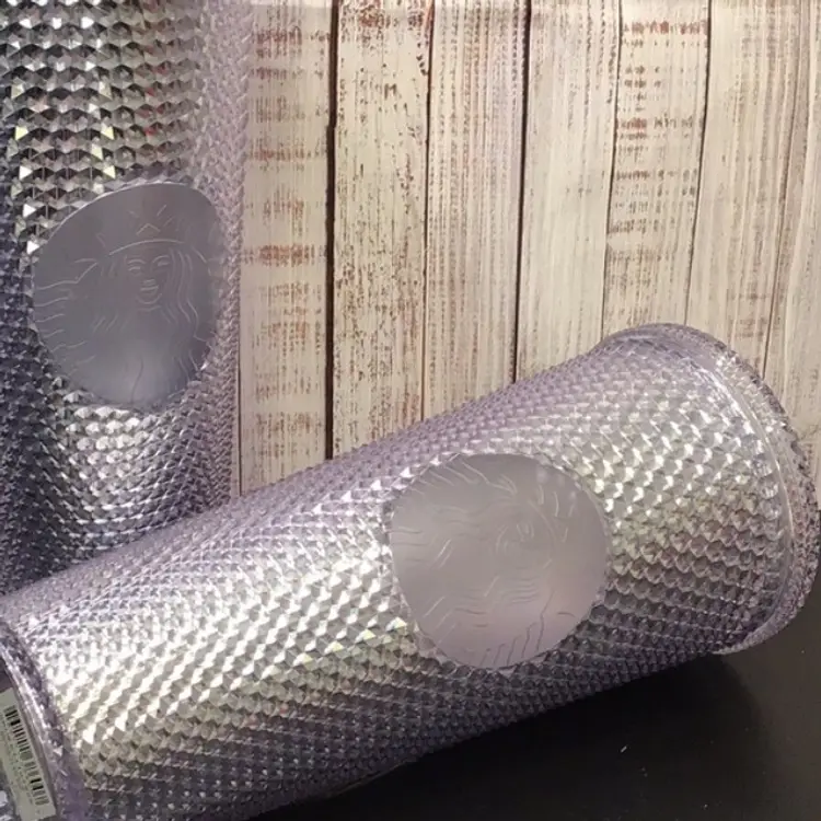 Starbucks Christmas bling studded venti tumbler 24oz from 2019 and sold out! Iridescent Cold Cup Bling Platinum Starbucks Cold Cup is back in Bling Platinum (silver). With a textured surface and debossed logo, these cold cups are the perfect accessory for any winter activity. This listing is for ONE coffee tumbler diamond sparkly blingy studs stud sparkle holiday