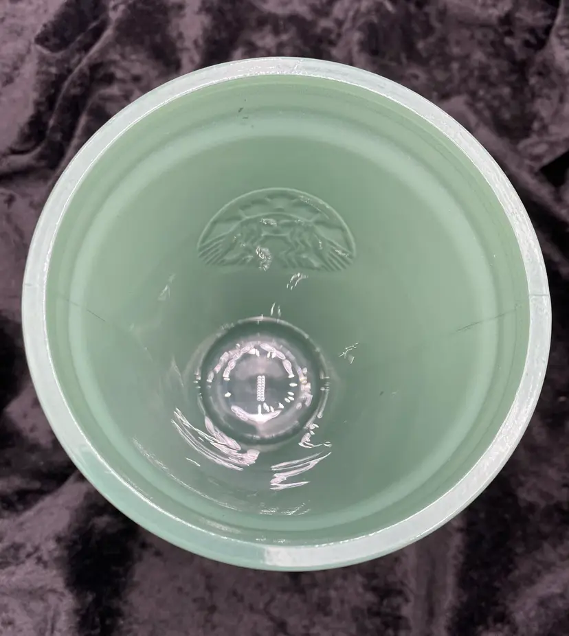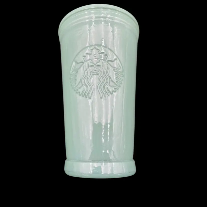 Sip your beverages in style with the Starbucks Frosted Green Recycled Glass Tumbler. With a 16 ounce capacity, this glass cup is perfect for your favorite cold drinks. The tumbler features the iconic Starbucks logo, ensuring a touch of coffeehouse chic with every use. Crafted in Spain, the tumbler showcases a sleek design with a soft frosted green hue that adds a pop of color to your day. The durable glass has the dimensions of 2.5 inches in base diameter, 3.8 inches in width, and 6 inches in height, making it a practical and visually appealing choice for on-the-go or at-home enjoyment.
