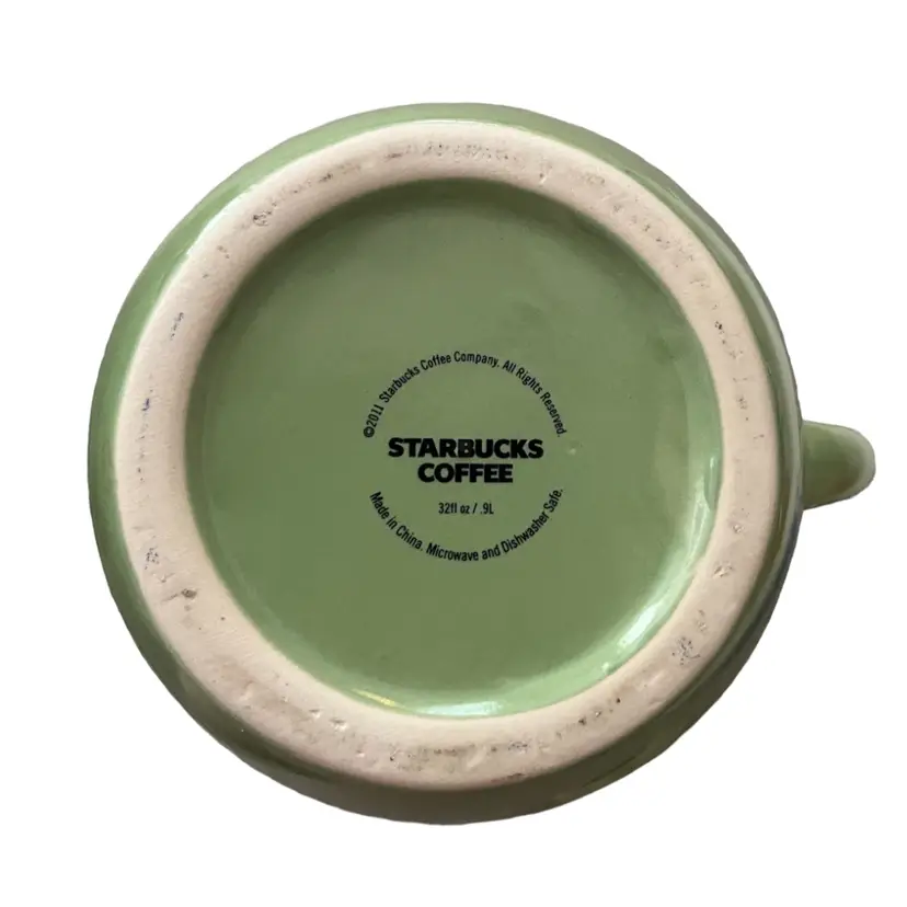 Green Starbucks 2011 coffee pot or tea pot with lid. 32 oz. dishwasher microwave safe. 7”x 6”