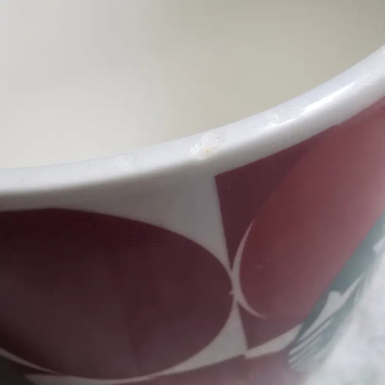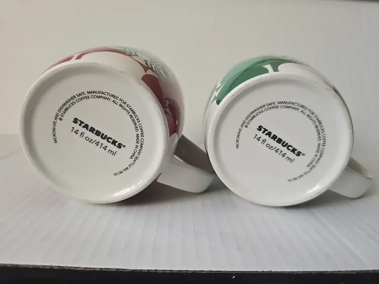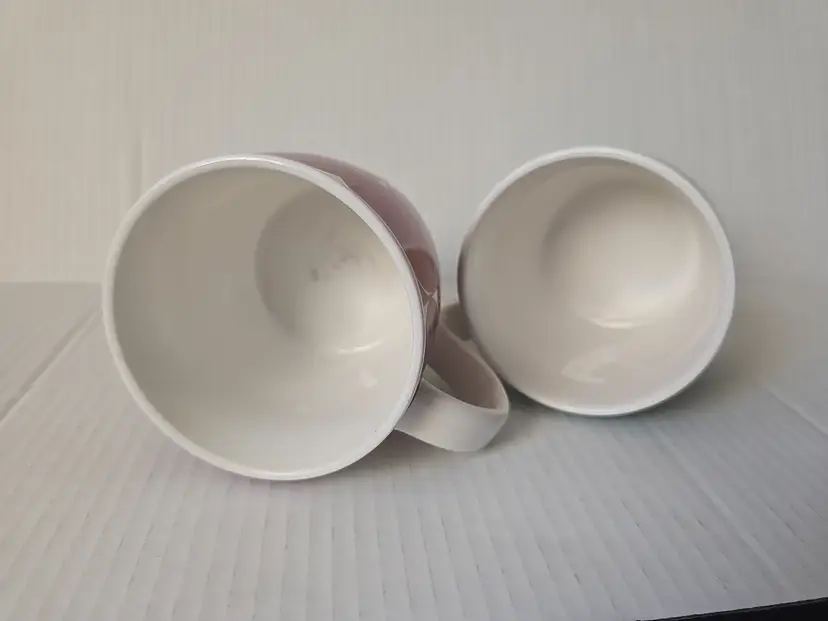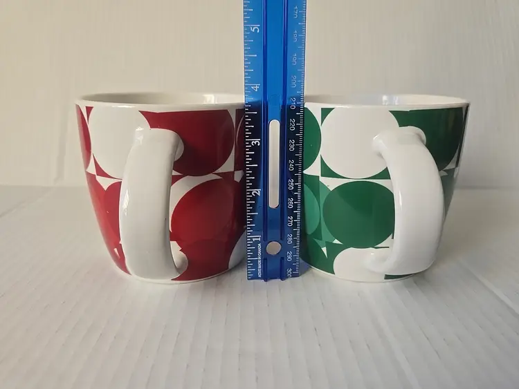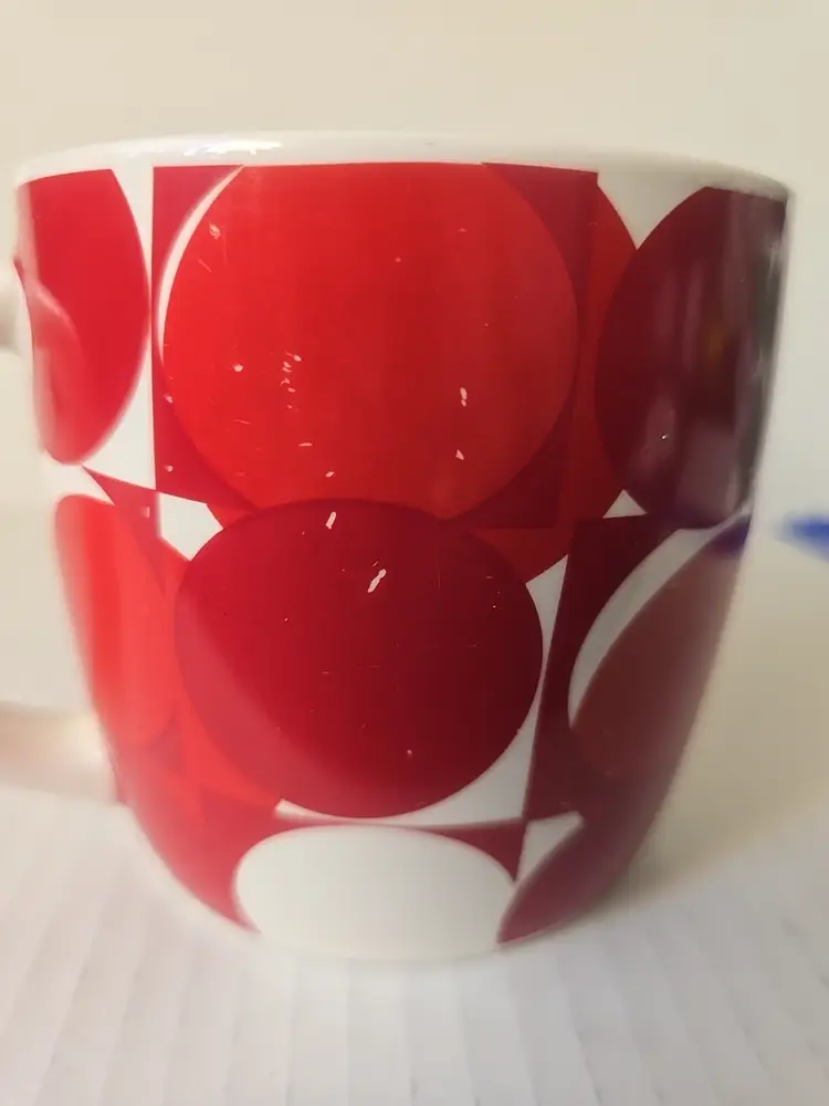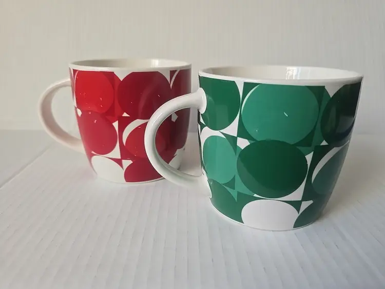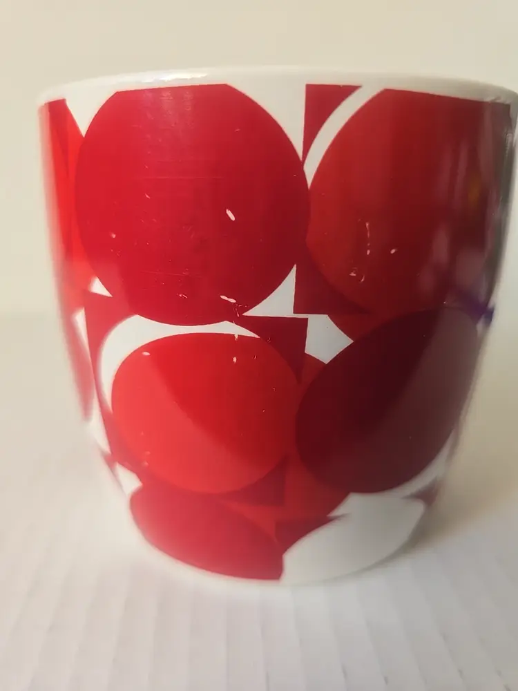 Condition: Pre-owned. Light surface wear consistent with use, including faint spoon marks inside and a couple of tiny glaze imperfections on lip of the red mug. Overall clean and presentable — please review photos for details.