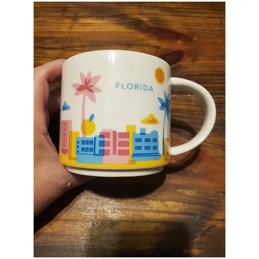 Starbucks You are Here Florida Coffee Mug 2013 Gently preowned No chips or cracks 14 ounces Yellow interior Microwave and Dishwasher safe