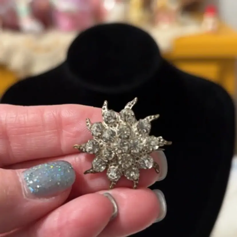 Beautiful starburst small brooch with rhinestones. No missing stones.
