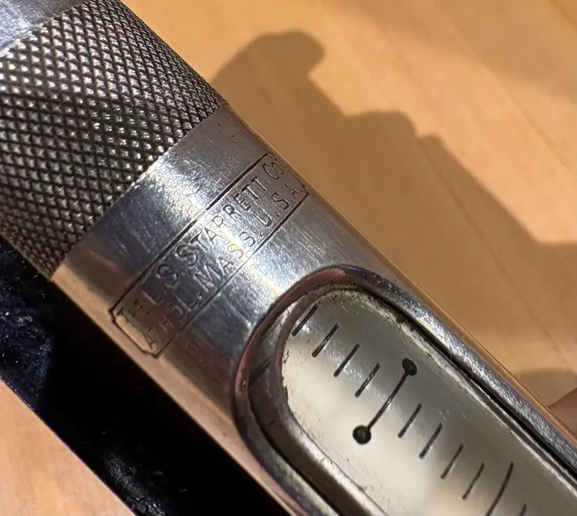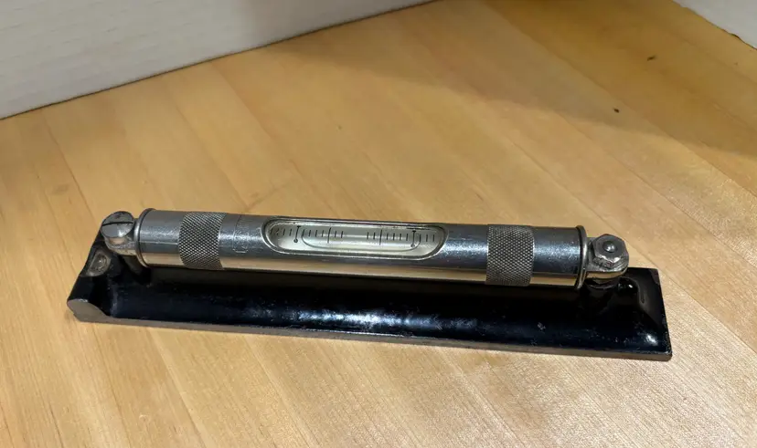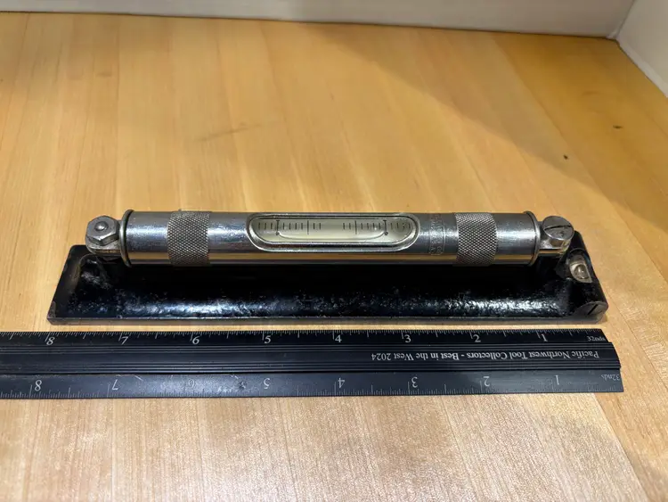 Starrett 8" double bubble machinist level. Both vials are good. It's not marked with a model number but looks like a 98-8 and appears to be 0.005" per grad. See the video for a calibration demo - it is adjustable. Based on the logo made after 1909 and probably before 1950-ish.