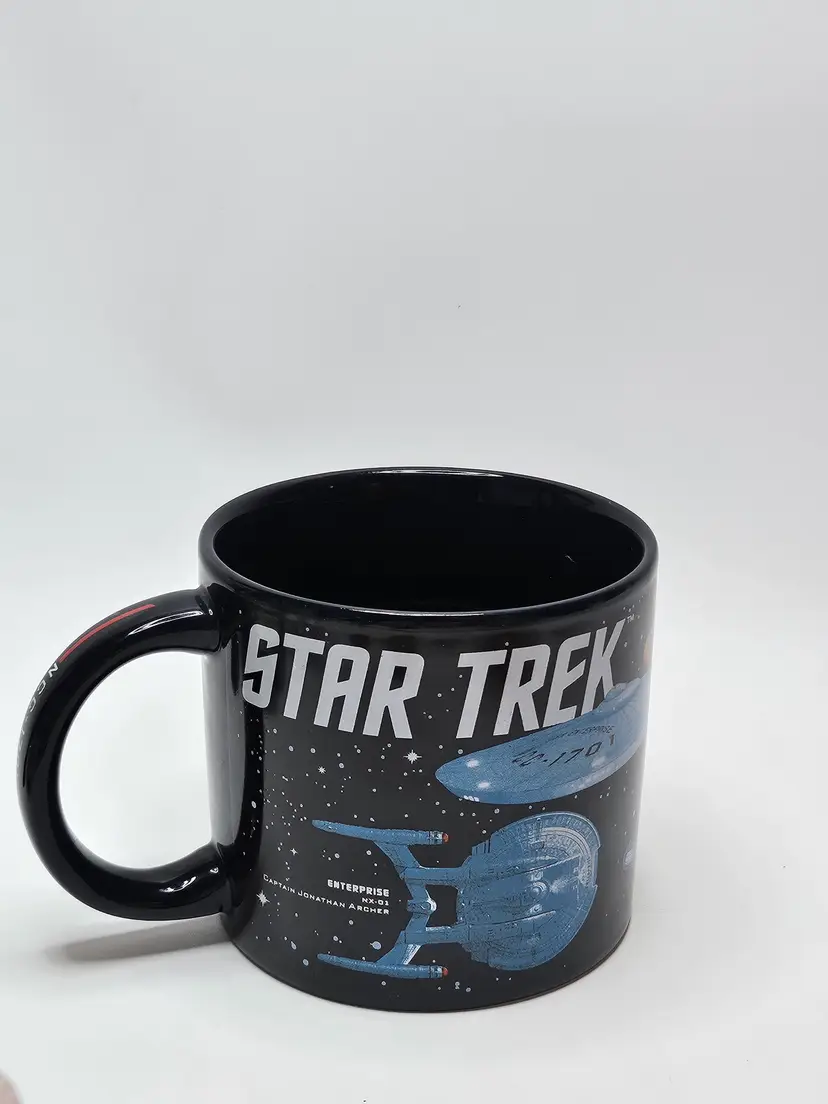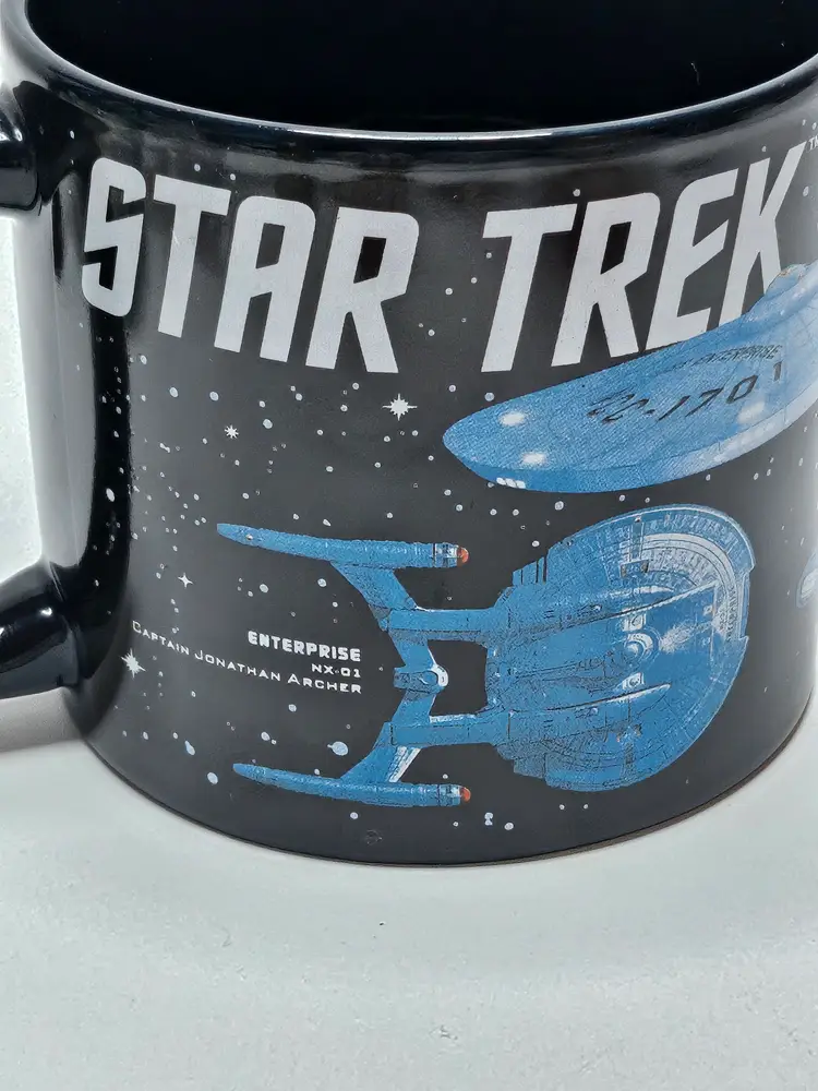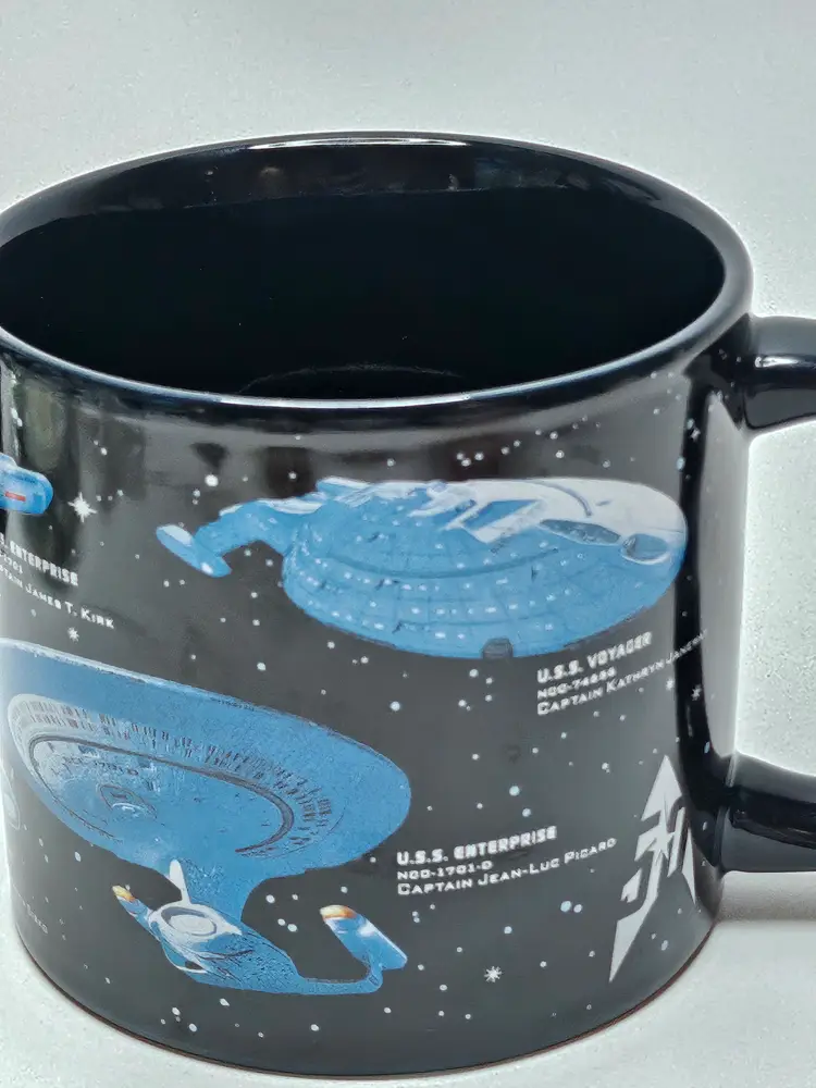 Whether you're a collector or just a fan, this mug is a great addition to your Star Trek collection. It's perfect for displaying in your office or on your bookshelf. So, sip and enjoy your favorite hot beverage while reminiscing about your favorite Star Trek moments.