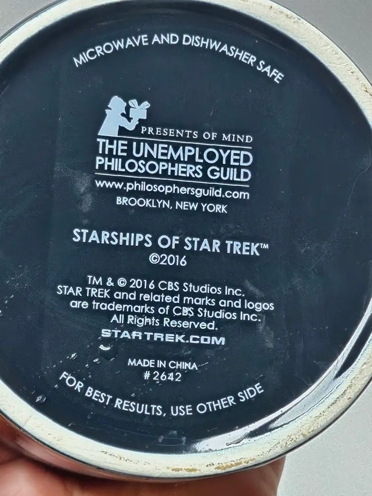 For all the Star Trek fans out there, this is the perfect mug for you! Featuring the iconic Star Ships design, this black ceramic coffee tea cocoa mug cup is a must-have for any fan of the franchise. Made by The Unemployed Philosophers Guild, this mug is of high quality and is perfect for your morning caffeine fix.