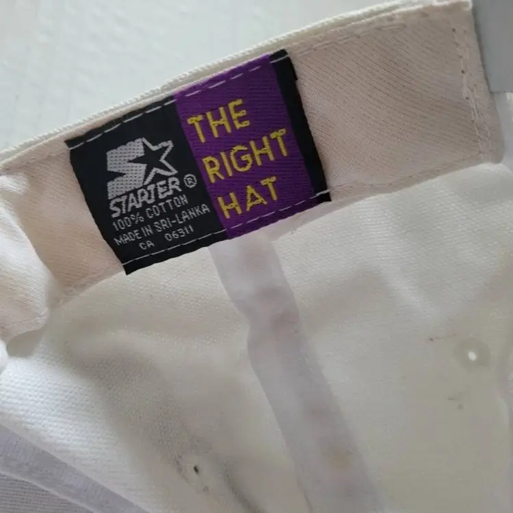 STARTER The Right Hat TBS Softball Adjustable Hat White NWT in excellent condition no damage except B1 written on bottom & a few loose stings. STARTER The Right Hat TBS Softball Adjustable Hat made in Sri-Lanka with adjustable strap.