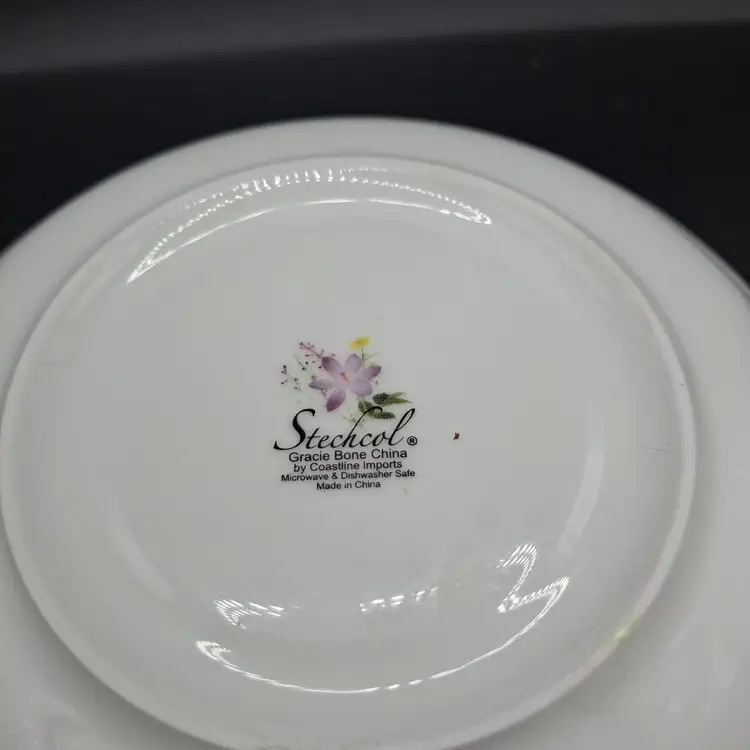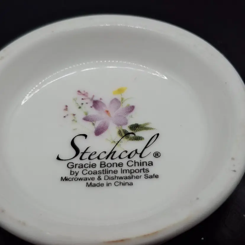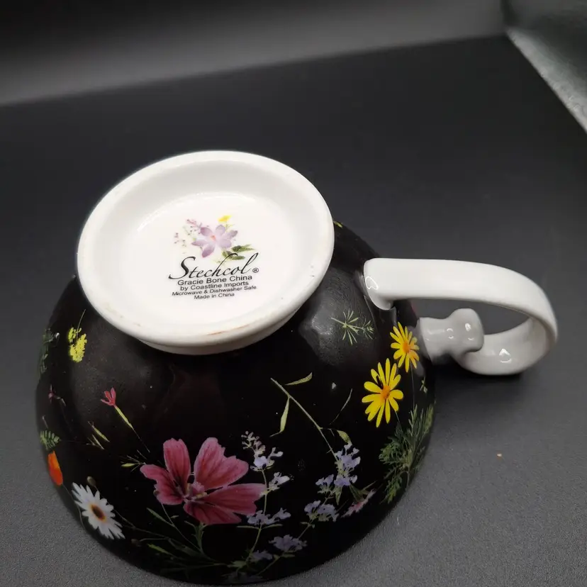 Stechcol Gracie Bone China Floral Tea Cup & Saucer Set Black Wildflower Design