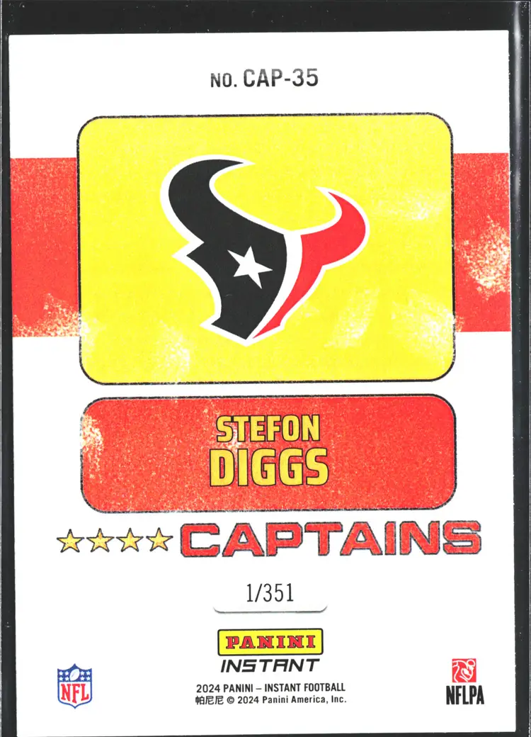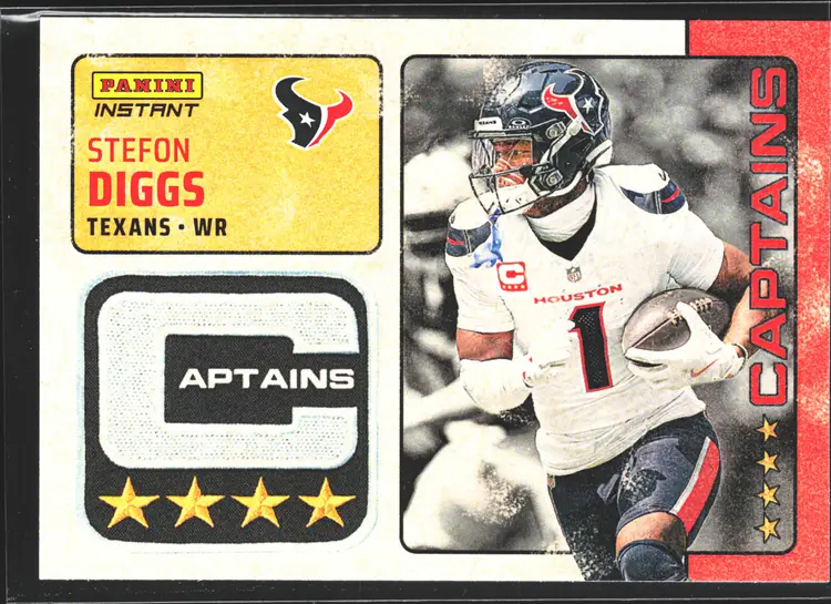 1st time buyer? Get $5 Off with code DISTRICT5 at checkout! Card as shown. All cards $20 and under ship PWE via lettertrackpro [https://www.letter-track.com/registerap.asp?AFID=8757] League: National Football League (NFL) Manufacturer: Panini Team: Buffalo Bills Season: 2024 Sport: Football Type: Sports Trading Card Player/Athlete: Stefon Diggs Set: 2024 Panini Instant NFL Features: Limited Edition, Serial Numbered Autographed: No Year Manufactured: 2024 Vintage: No Graded: No Material: Card Stock Original/Licensed Reprint: Original Country/Region of Manufacture: United States