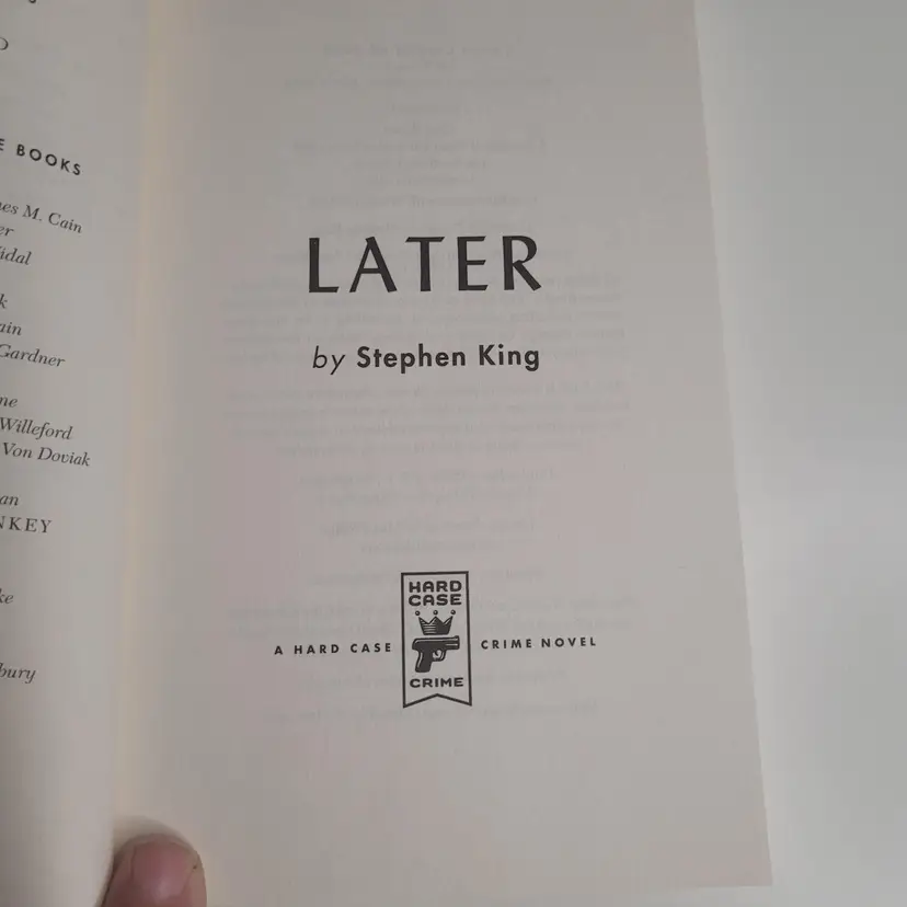 Dive into the thrilling world of Stephen King's 'Later,' a gripping novel from the Hard Case Crime series. Perfect for fans of suspense and mystery.