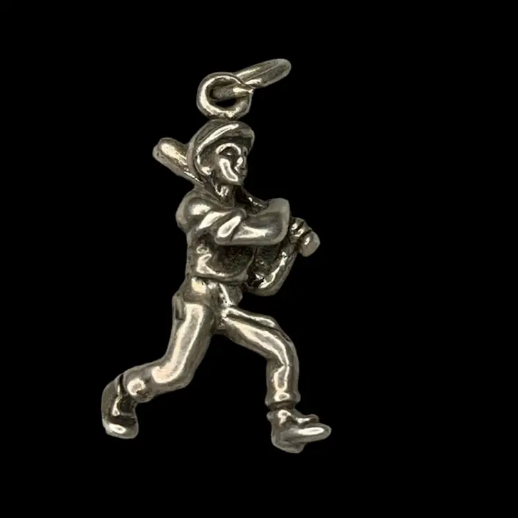 Sterling .925 3D Baseball Player Batter Charm For Bracelet