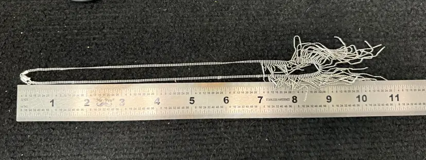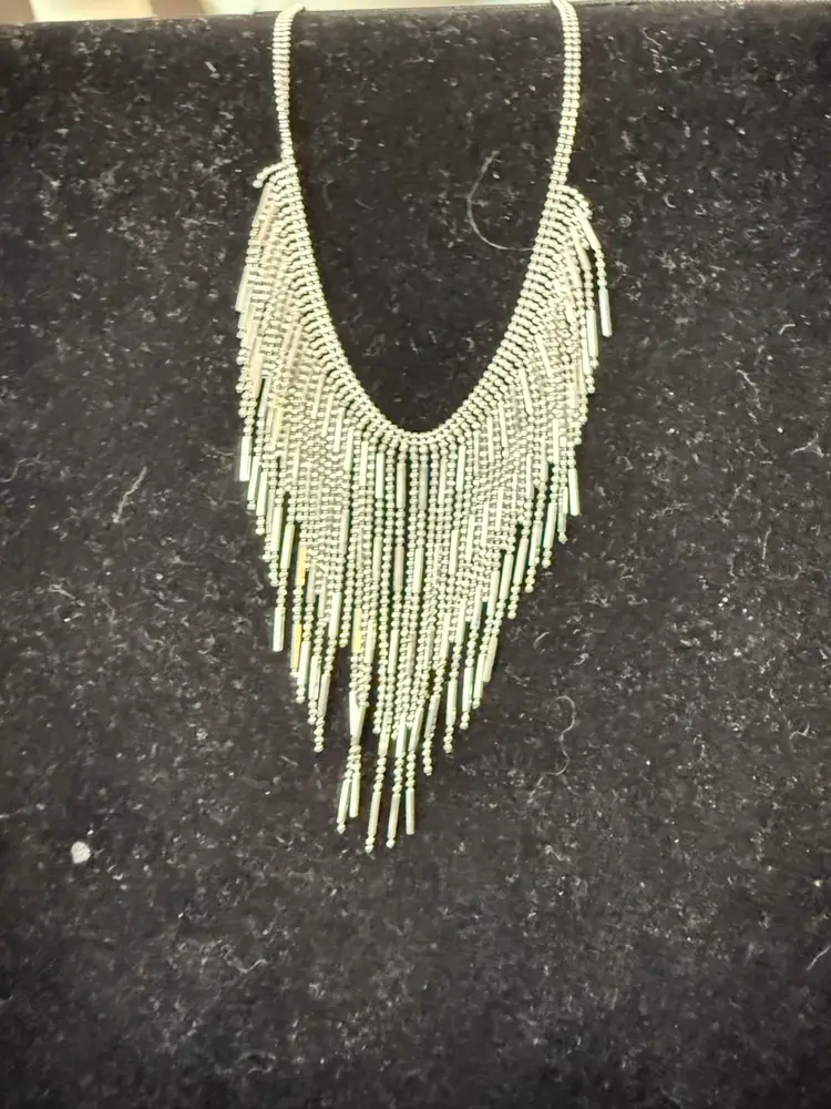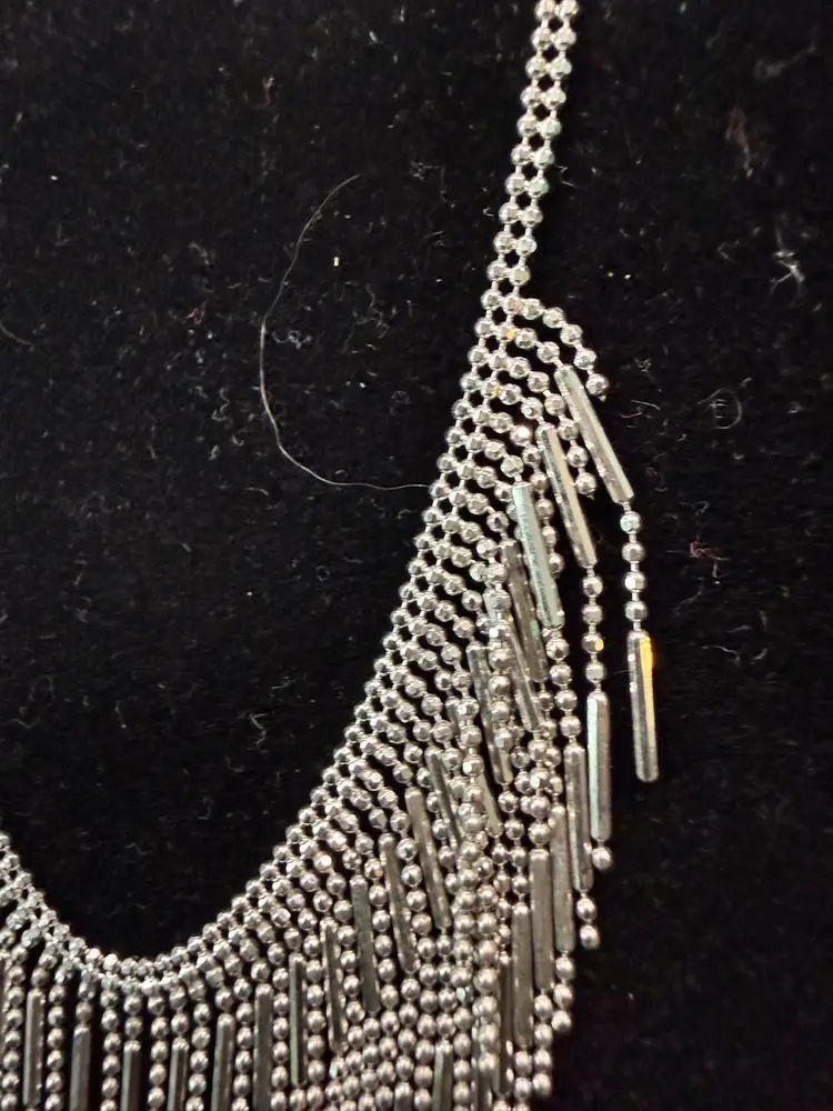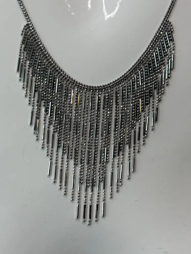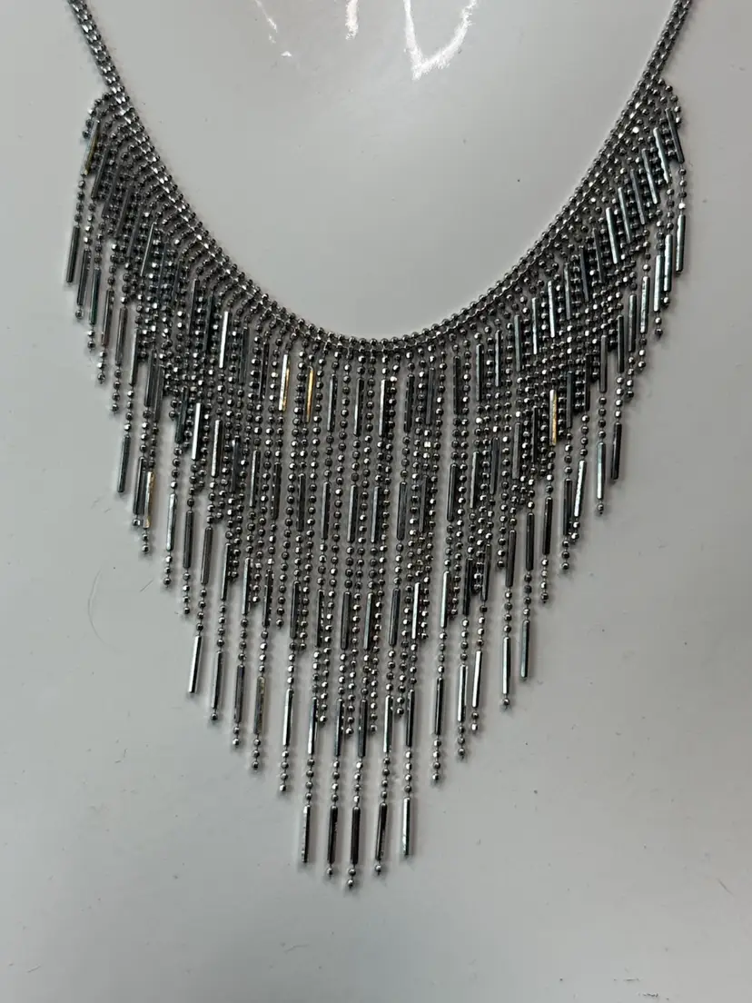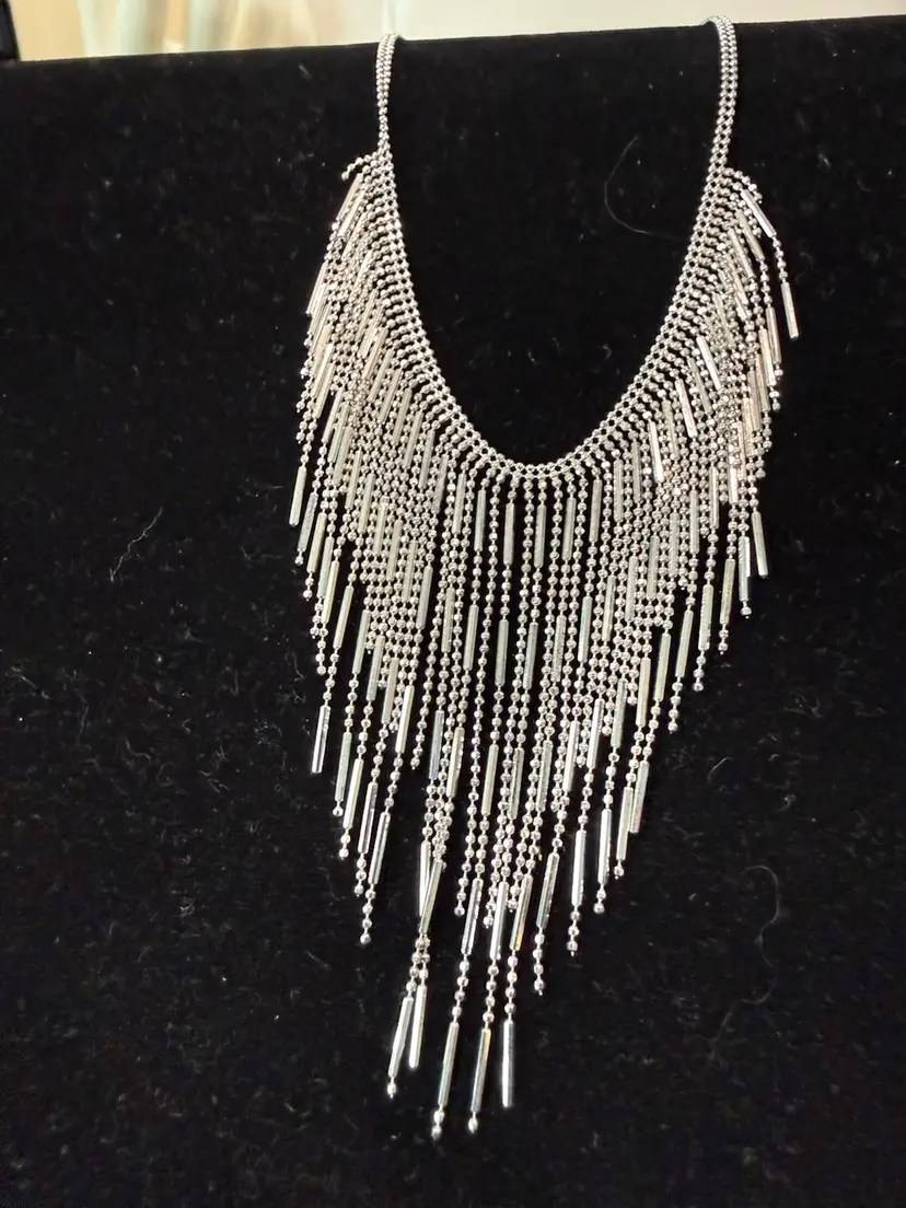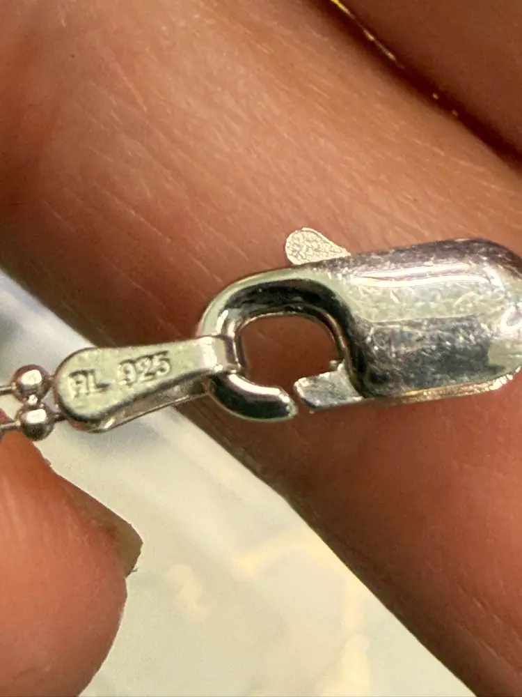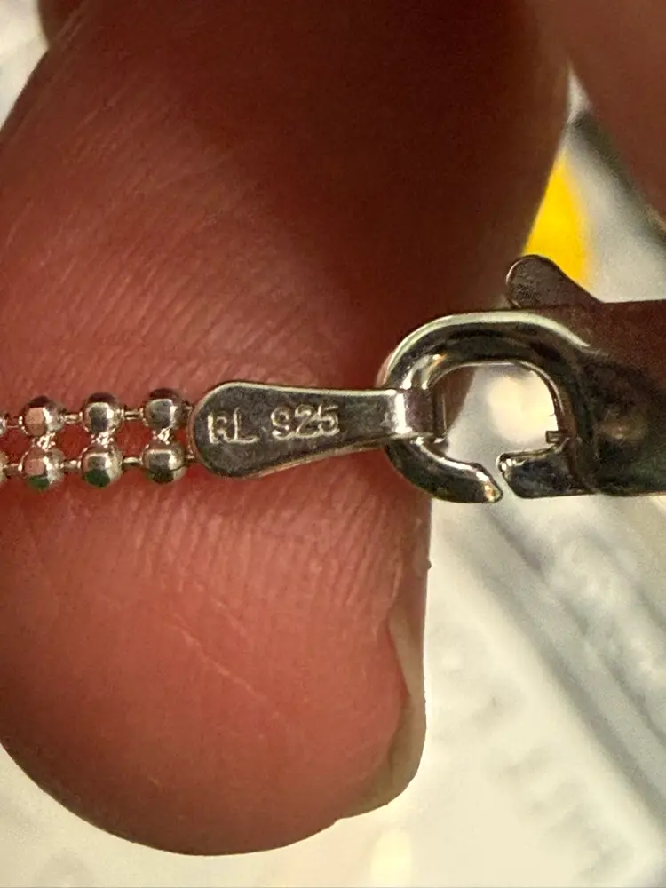 The Sterling 925 Fringe Bead Ball Chain Collar Bib Necklace is a stylish piece of fine jewelry made of sterling silver with a metal purity of 925. The necklace features a lobster closure, making it easy to wear. With a length of 18 inches, this necklace is versatile and can be worn for various occasions, adding a touch of sophistication to any outfit. The RL 925 hallmark signifies the high quality and authenticity of this piece.