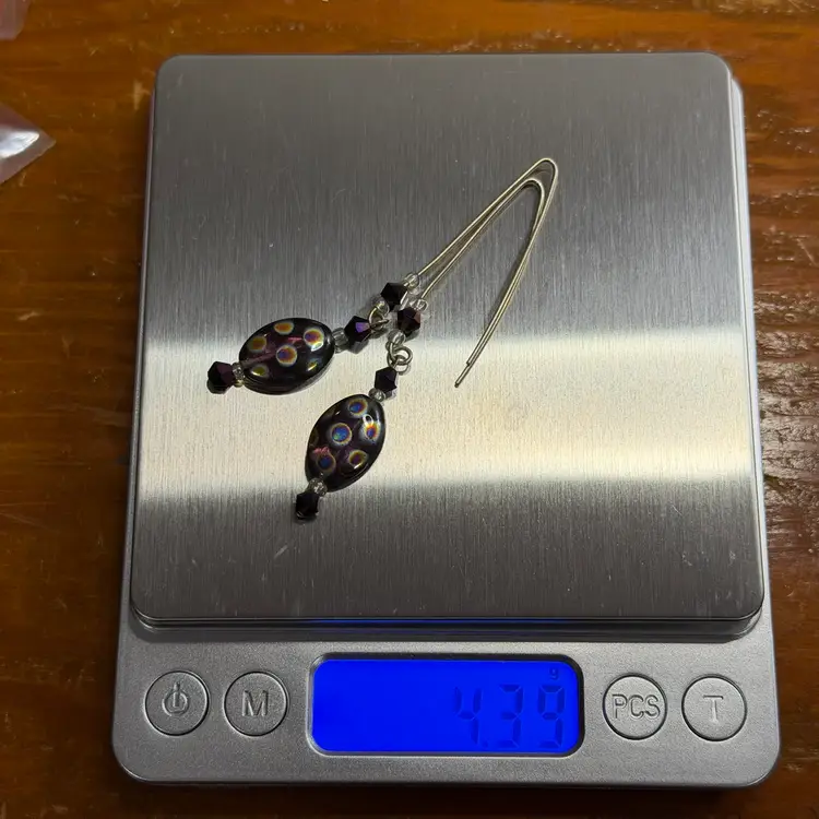 This pair of fun earrings is unmarked but was tested as sterling silver. They appear to be artisan made. They are about 3 inches long.