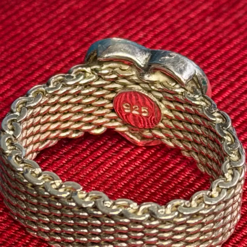 This interesting ring is tested and marked 925 Sterling silver. It has no markers marks. The ring size is US 6.5