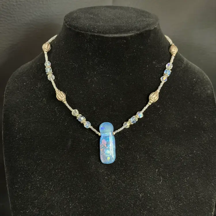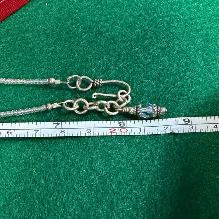 This striking necklace is unmarked but tested as sterling silver. This appears to be artisan made and about 16 inches long.