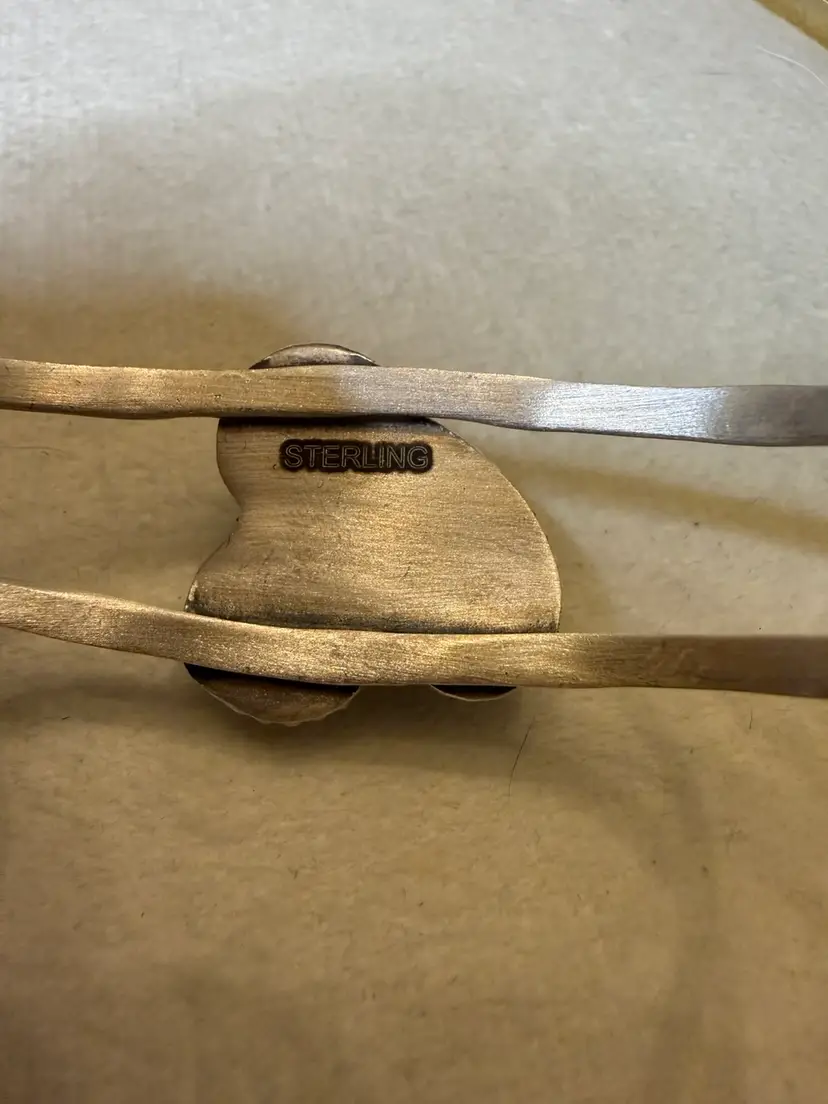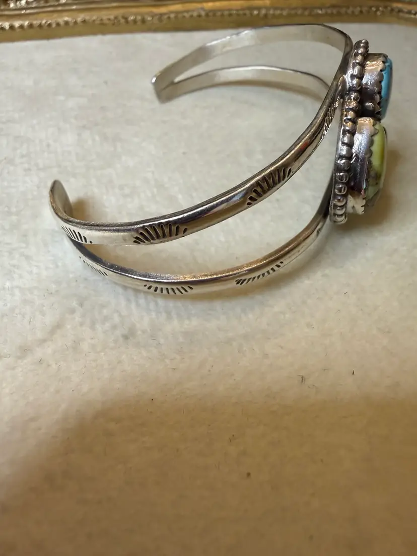 Sterling And Turquoise Cuff 2.5” opening with flex Stamped STERLING