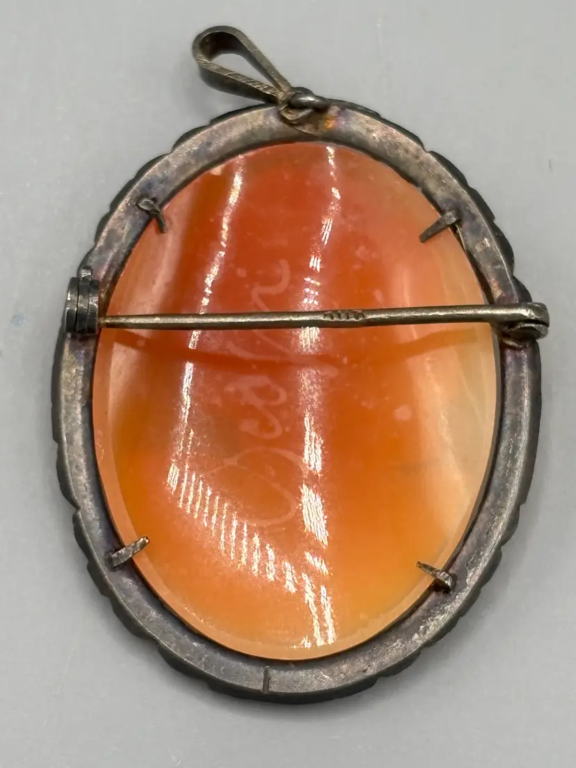 Sterling Cameo Lady brooch that can be used as a brooch or a pendant. This is a lovely pin to wear and cherish forever. This would make a great gift for any collector.