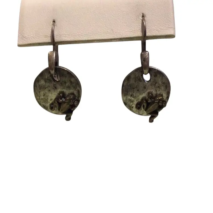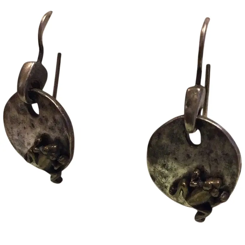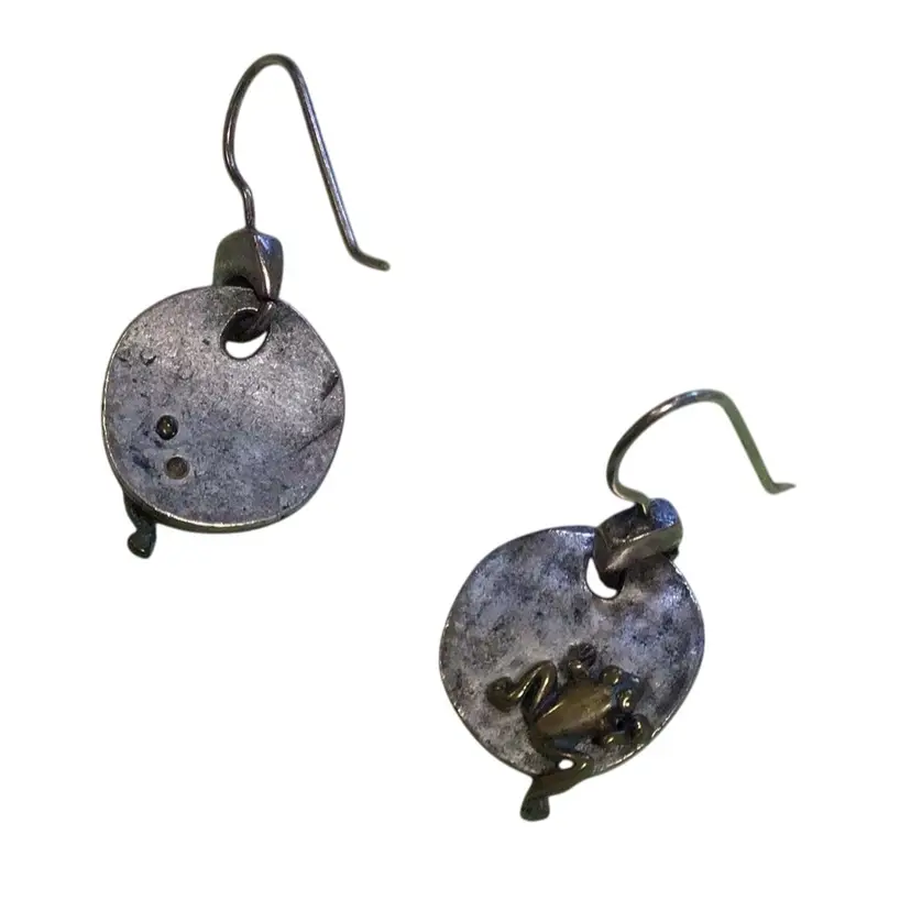 Sterling discs & ear-wires with brass frog attached. No marks, tested & confirmed 925. #544