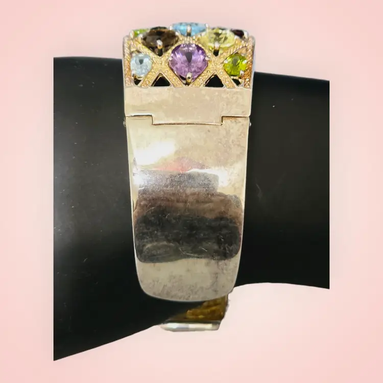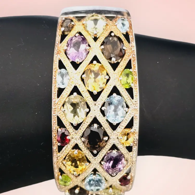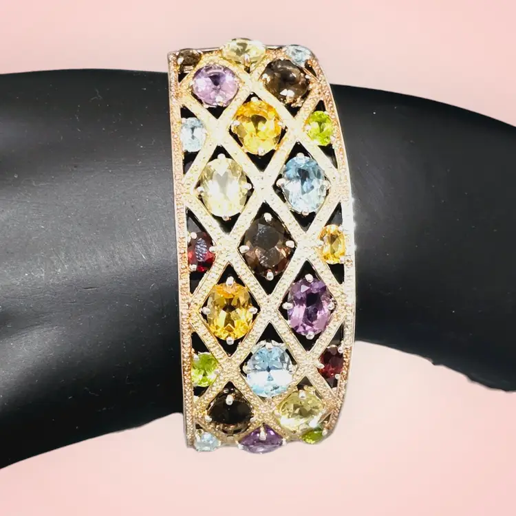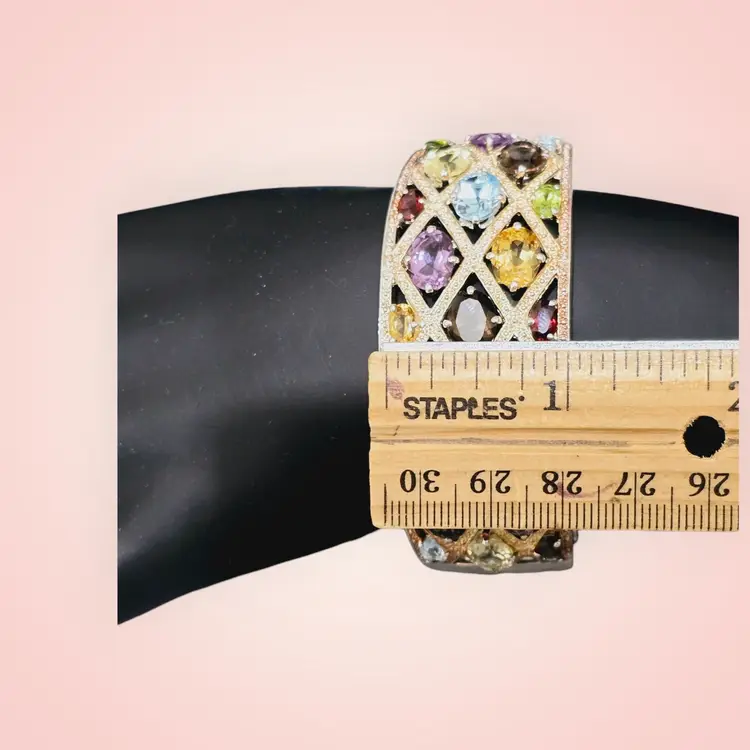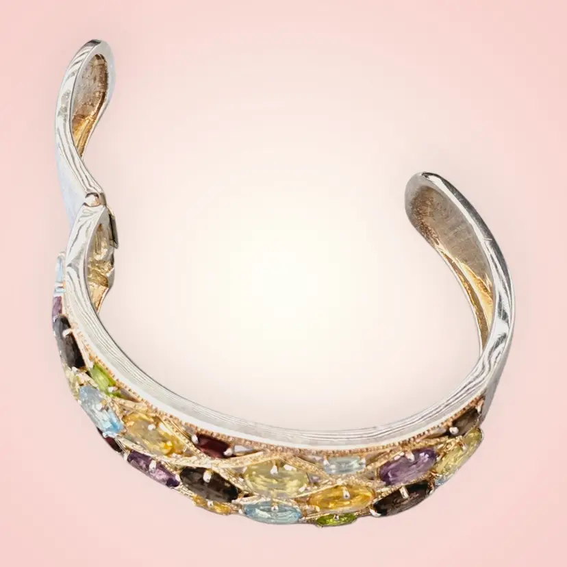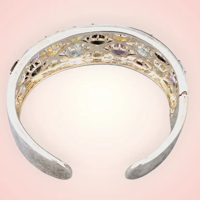 Sterling Silver 23ct QVC Cut Multi-Color Gemstone Hinged Cuff Bracelet Gorgeous
