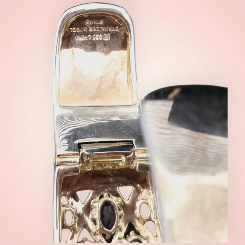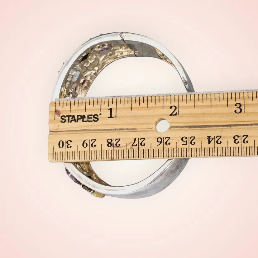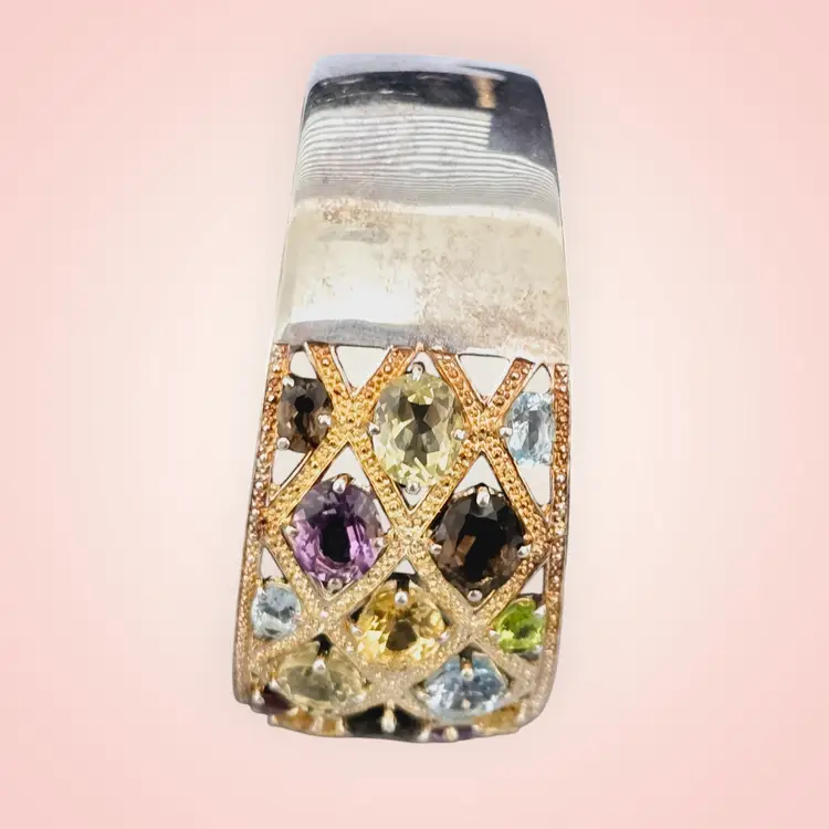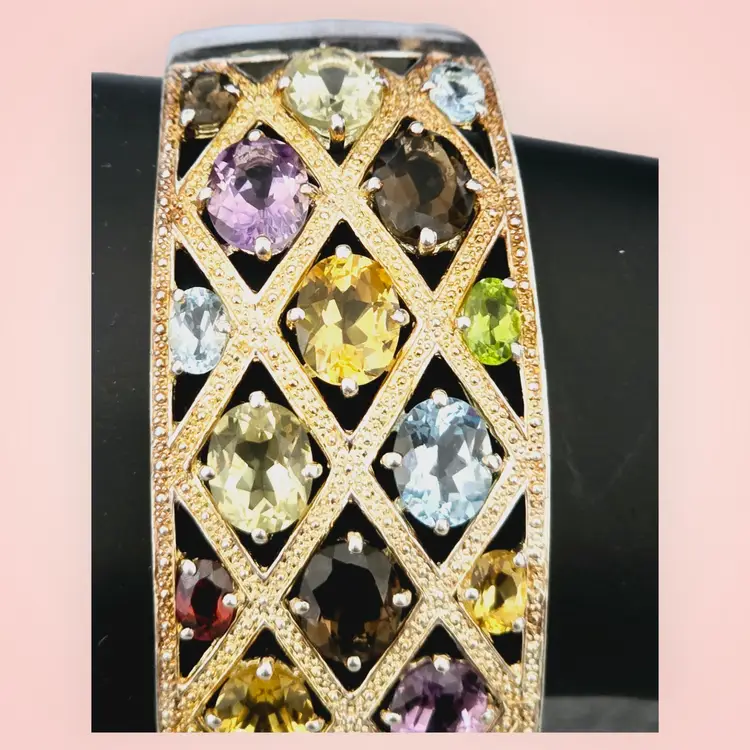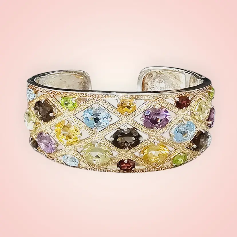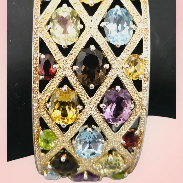 Sterling Silver 23ct QVC Cut Multi-Color Gemstone Hinged Cuff Bracelet Gorgeous