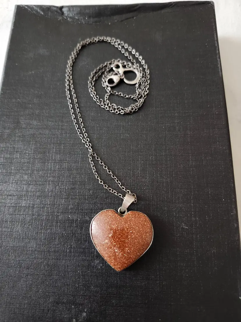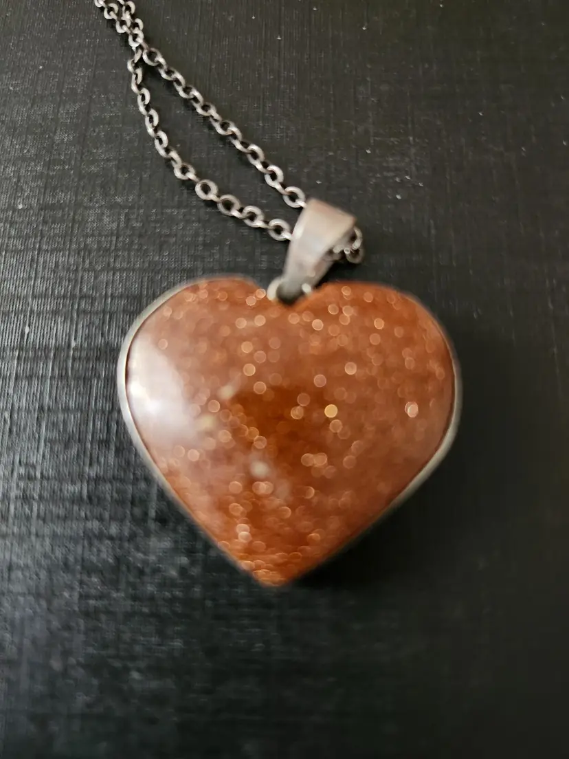 This elegant pendant features a heart-shaped gold stone set in sterling silver. The pendant hangs from a 30-inch sterling silver chain, making it a versatile accessory that can be worn with a variety of outfits