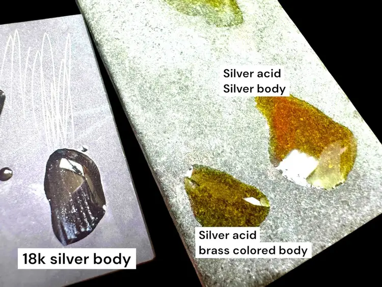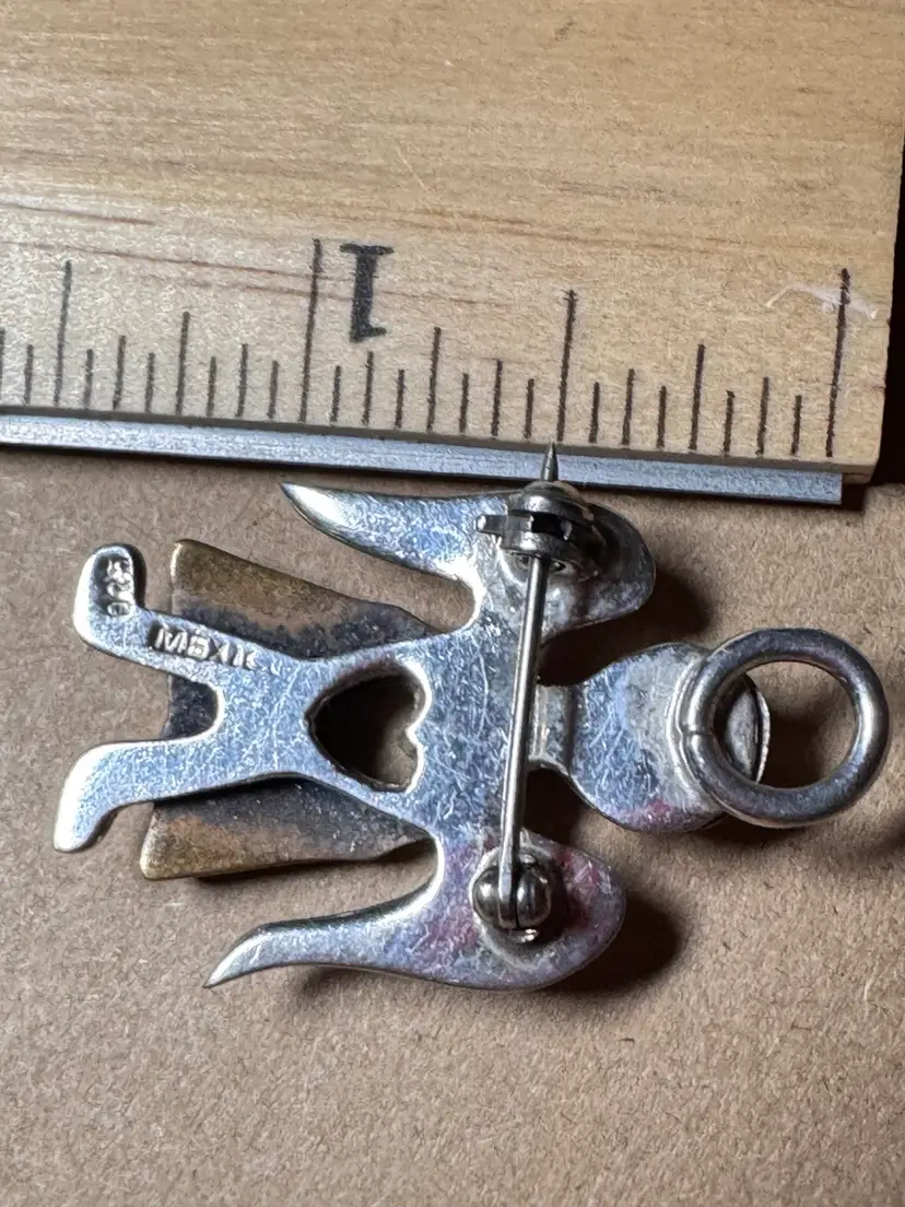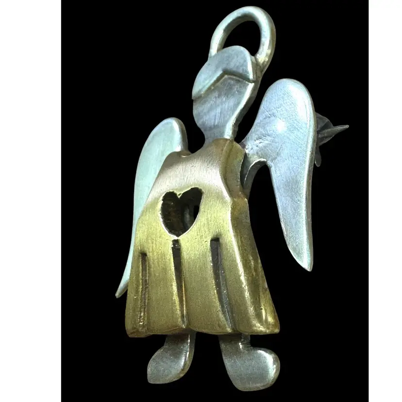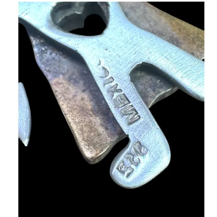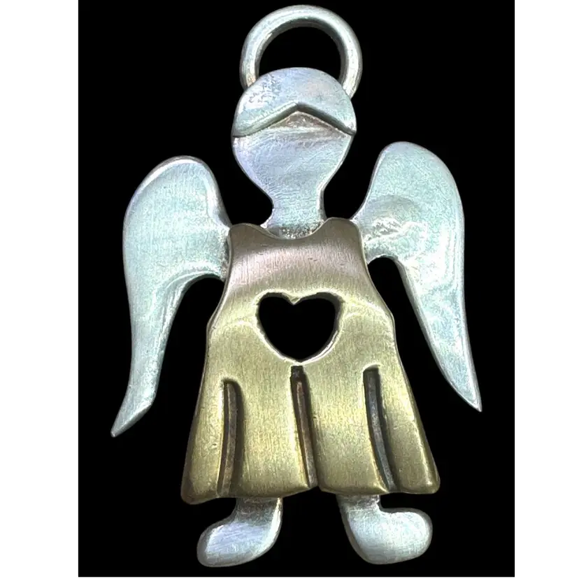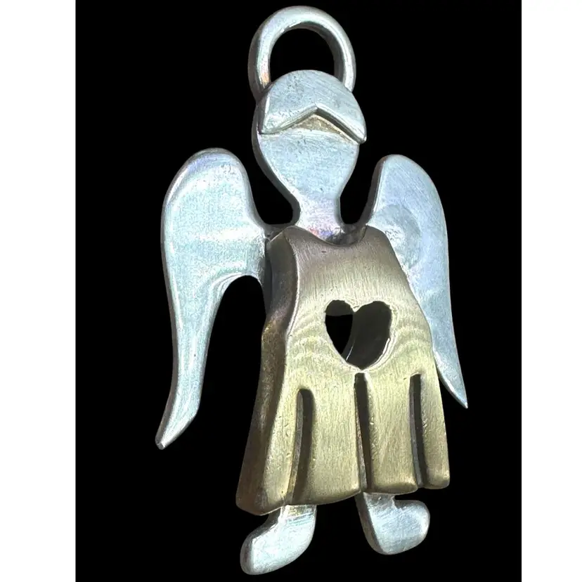 I tested the angel in 3 places - it tested Sterling each time. I tested the bronzed colored dress - it tested 800 or 80% silver . It must be mixed with copper to get that color. - see pics & color chart for silver solution. Signed 925 Mexico Measures about 1.5” x 1” VGVC - needs some cleaning