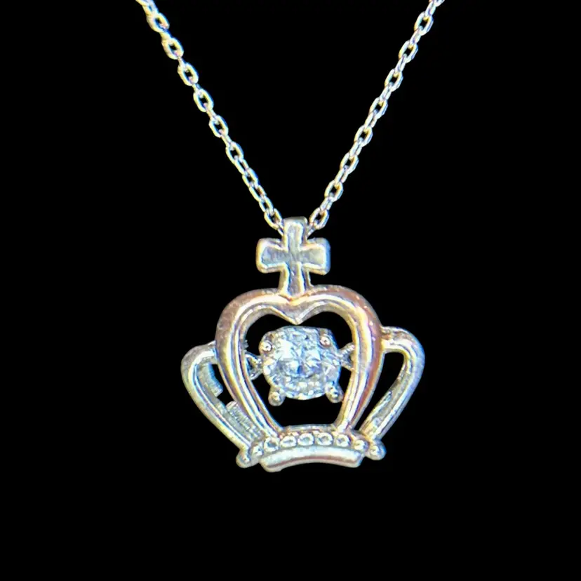 Sterling Silver Aphrodite Crown Necklace with Floating Heart Dancing Stone