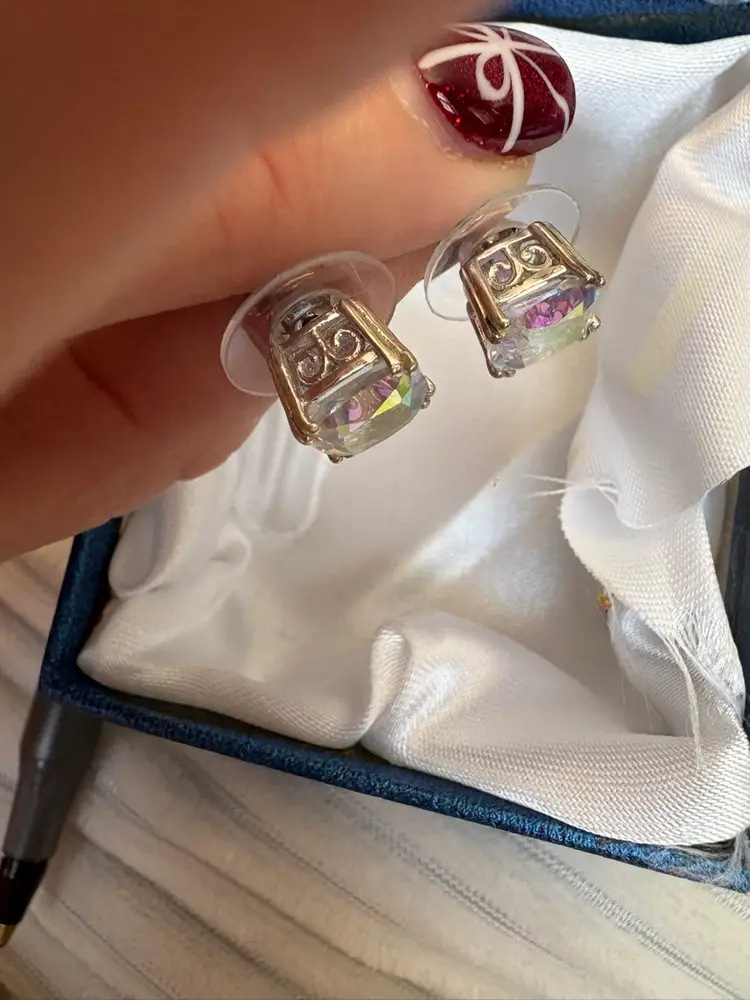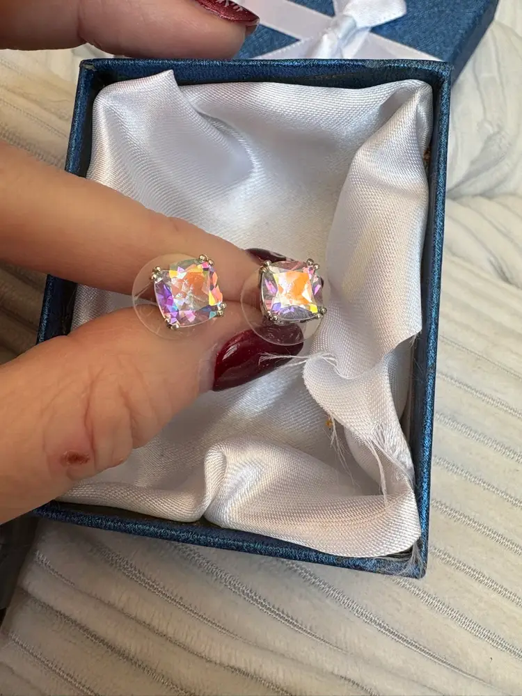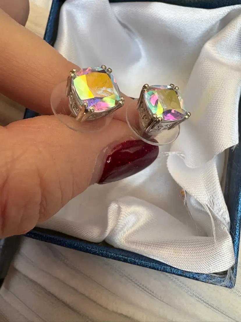 Sterling Silver Aurora Borealis Rainbow Quartz Stud Earrings
