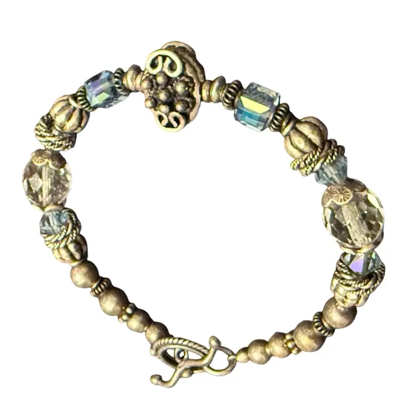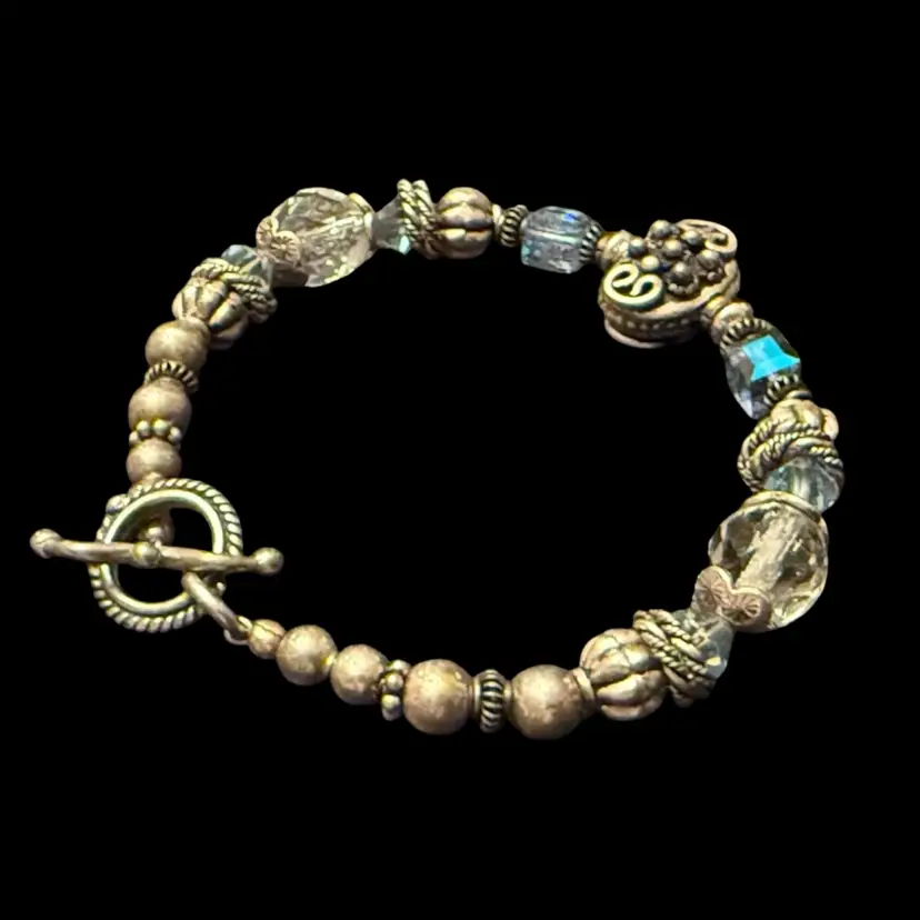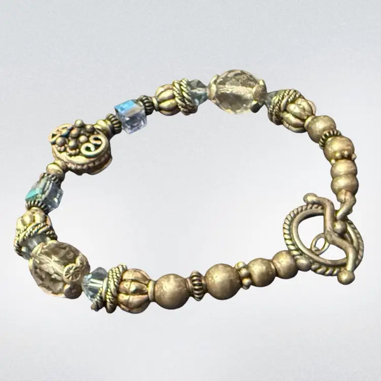 Sterling Silver Bead & Swarovski Crystal Bracelet 8”, 20.5g