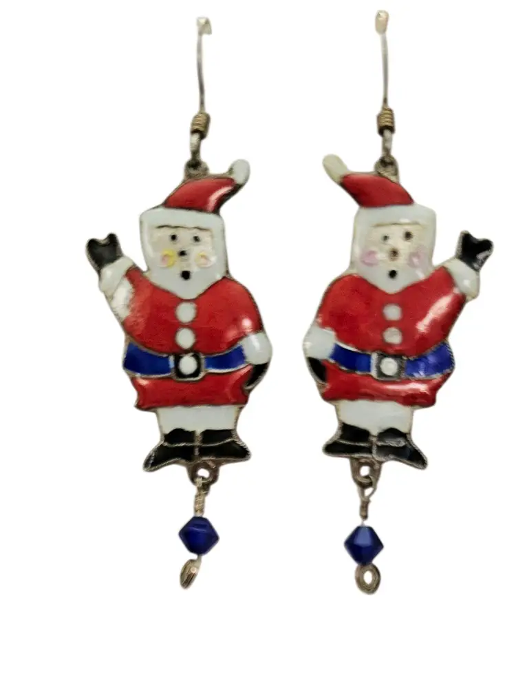 Sterling Silver Enamel Santa Earring Dangles C297