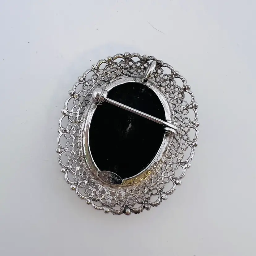Soo beautiful! Estate sale find. Marked sterling, untested. One prong is missing as shown on last photo. 1.25”x 1.5”
