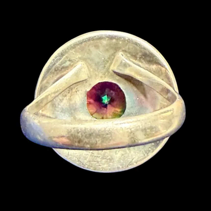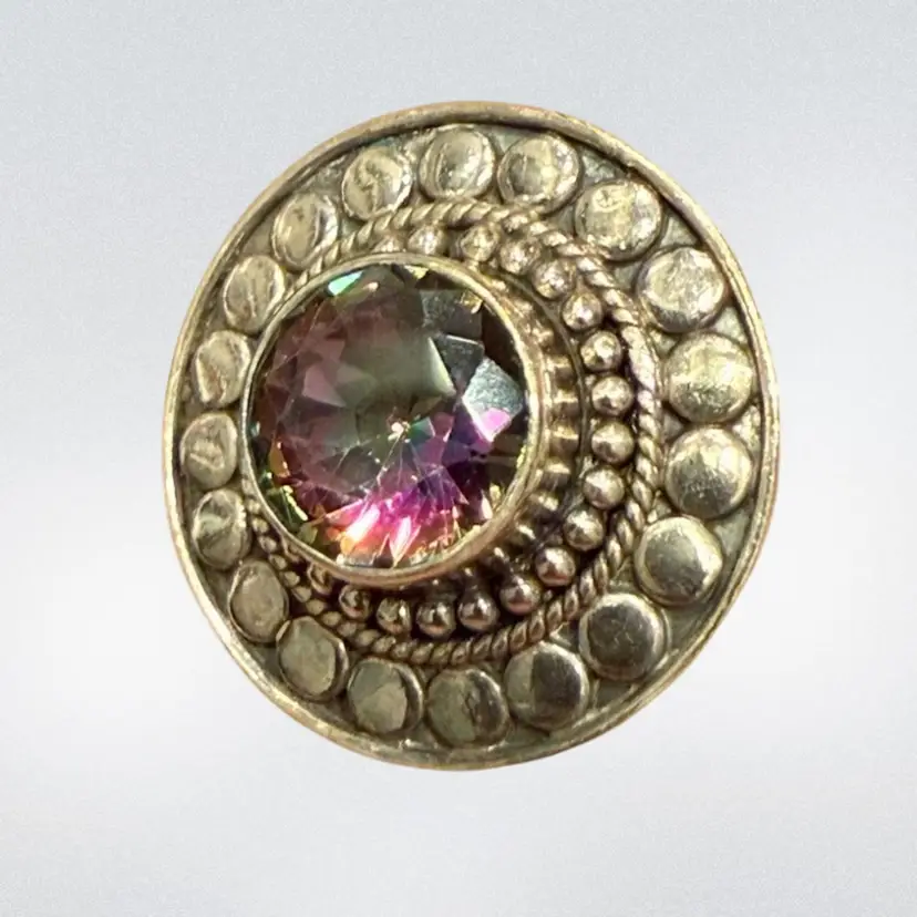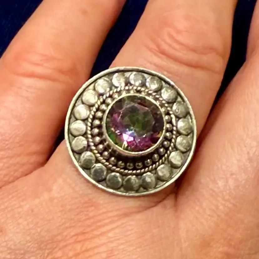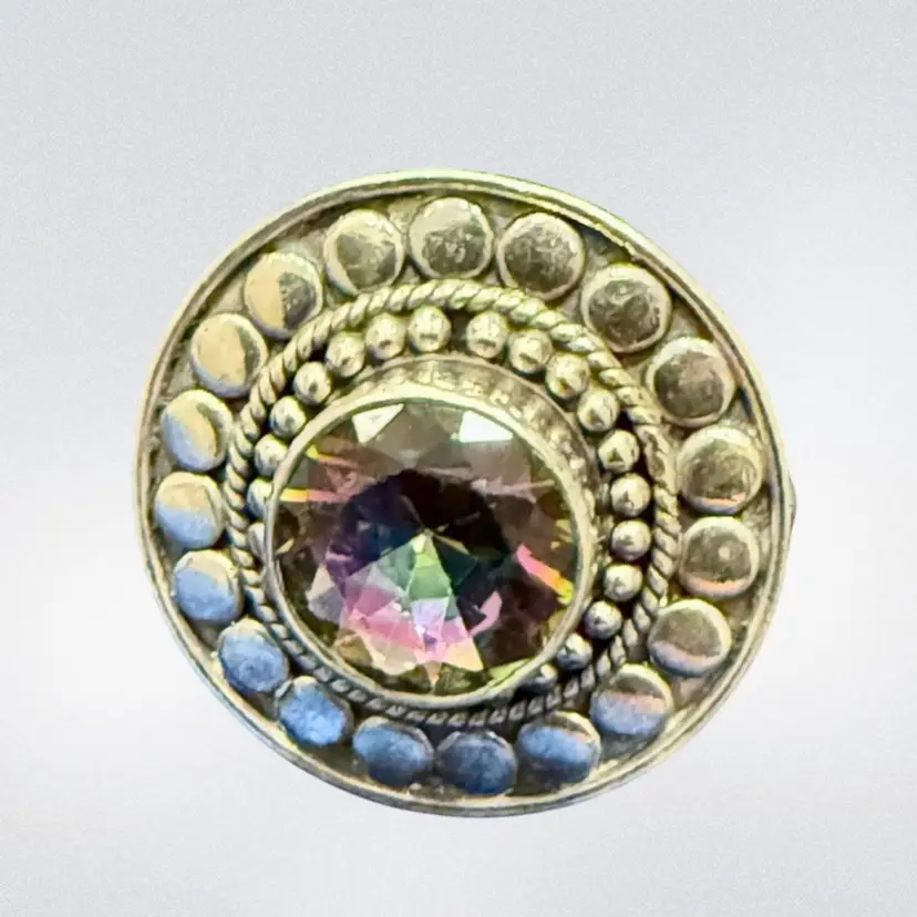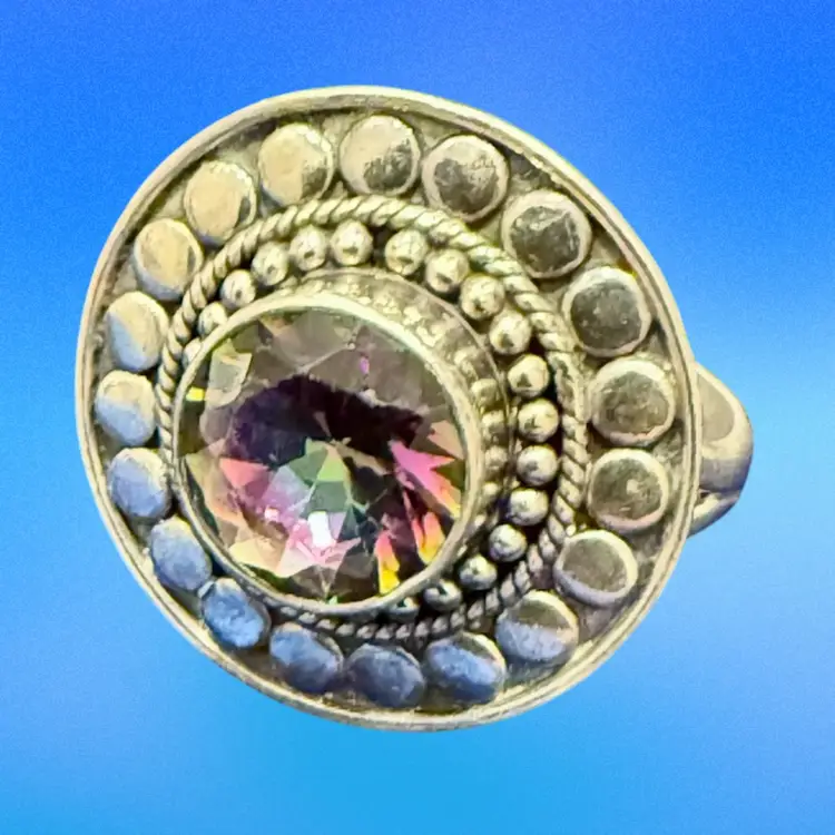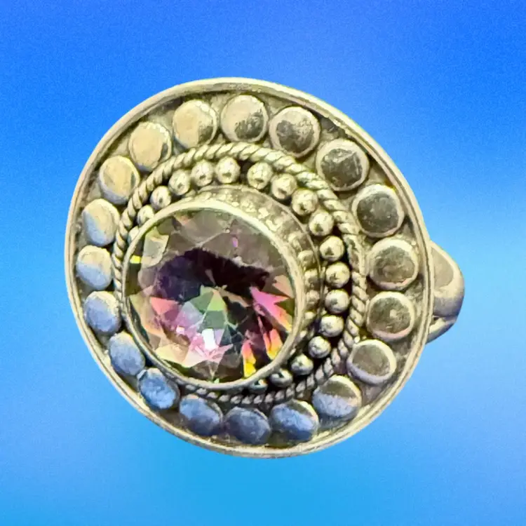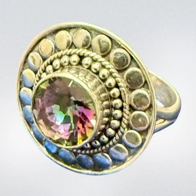 Sterling Silver Mystic Topaz Boho Ethnic Ring Size 7.5, 5.7g