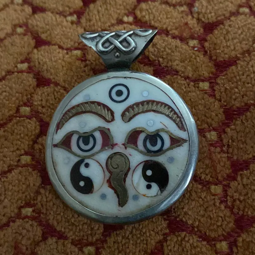 Beautiful Tibetan Charm Hand Crafted. 1 1/2 in length, 2 in width.