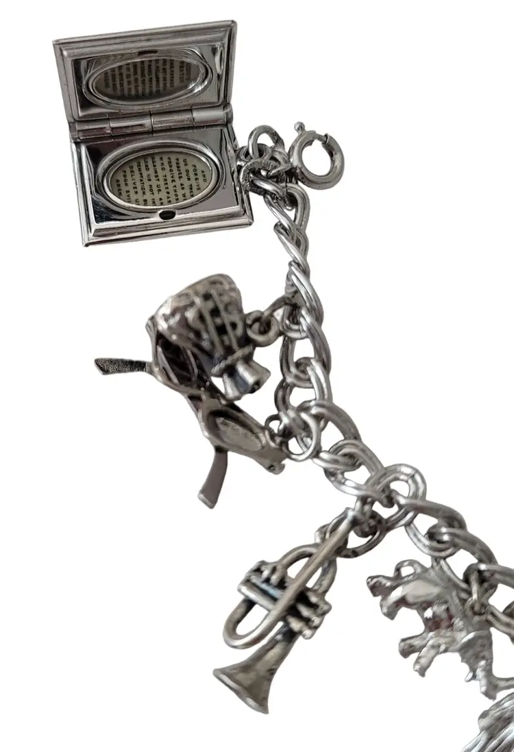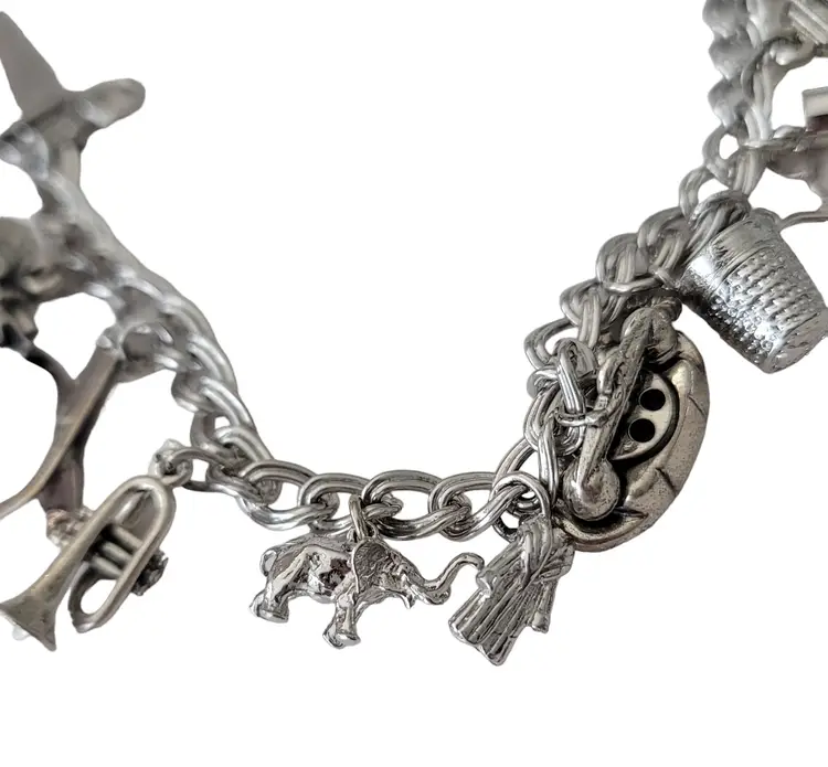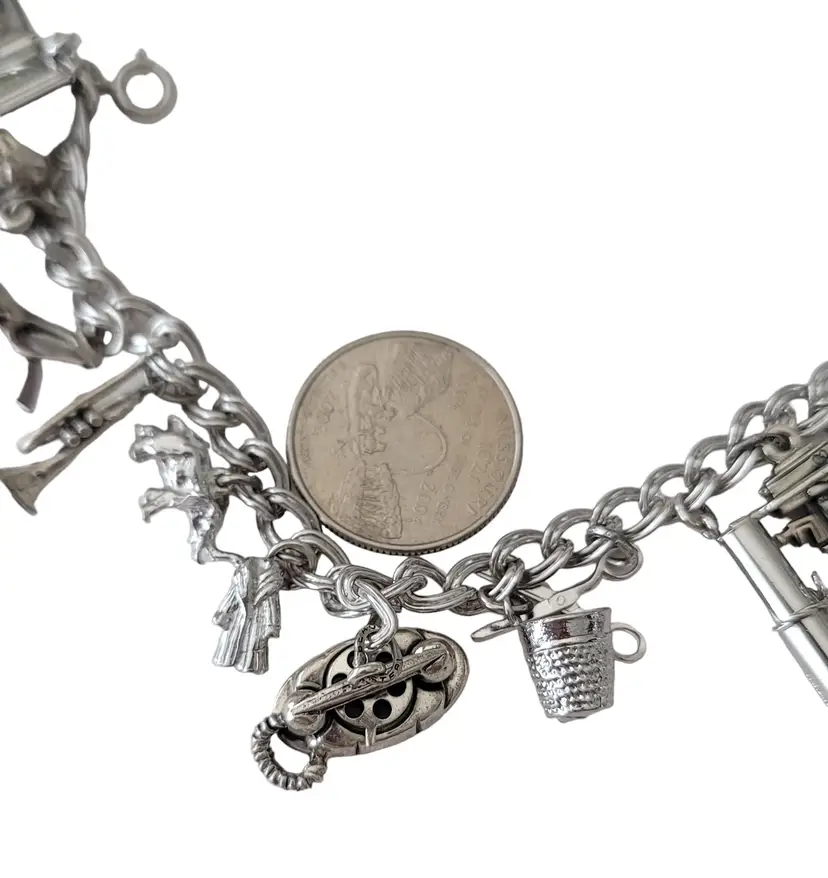 Sterling Silver Vintage Loaded 14 Special Charms Bracelet 7" Long E631