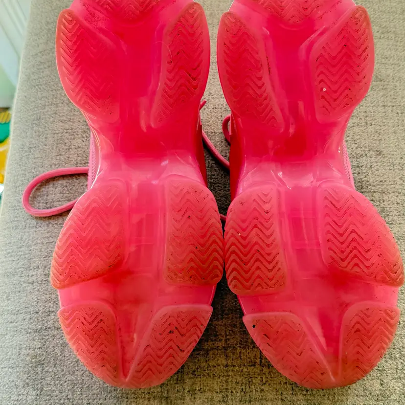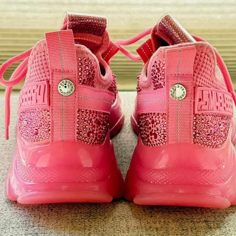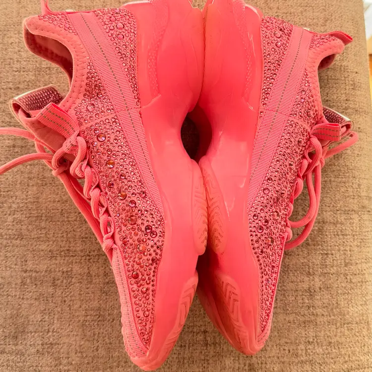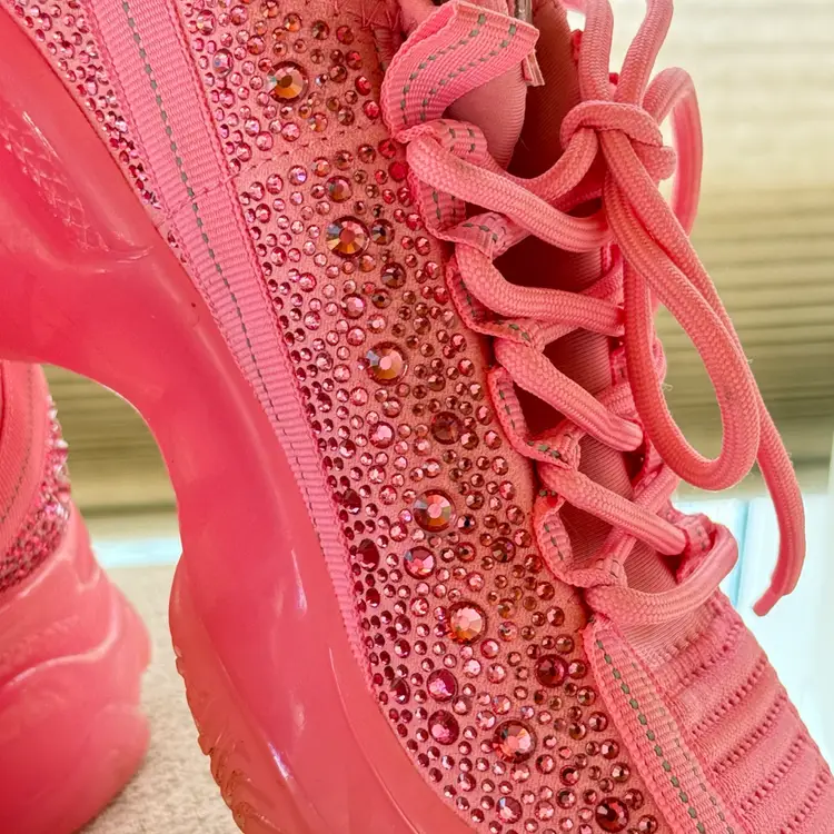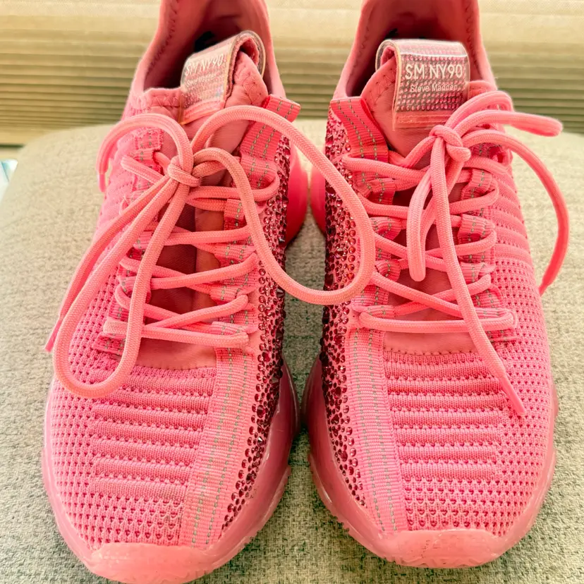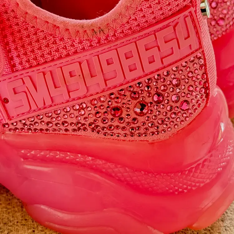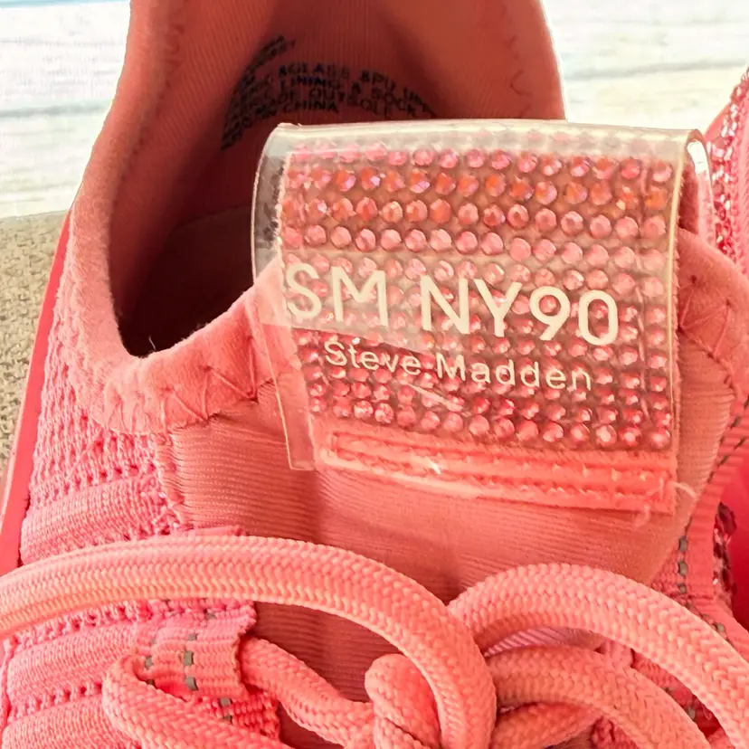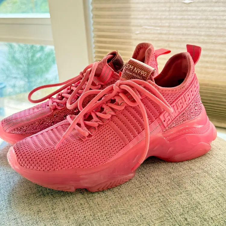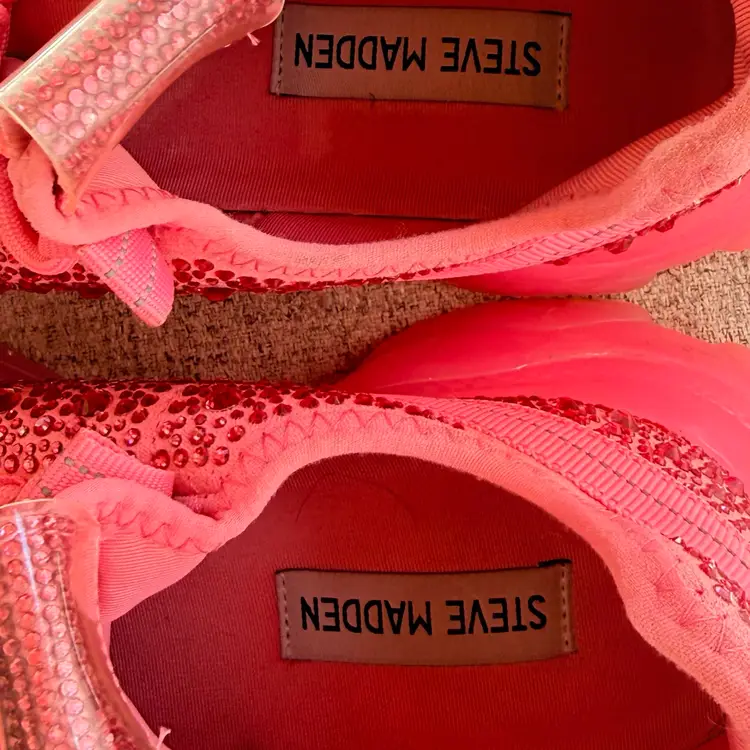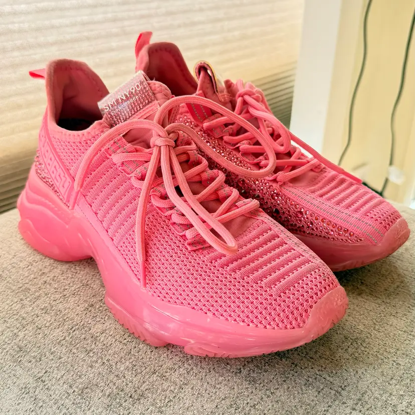 Steve Madden 'Maxima' sneakers. Neon hot pink vegan knit uppers with rhinestone embellishment, synthetic soles, lave up closure, 1.75" heel. Women's size 8.5 worn once.