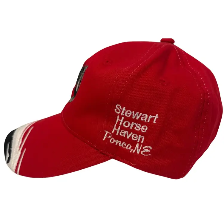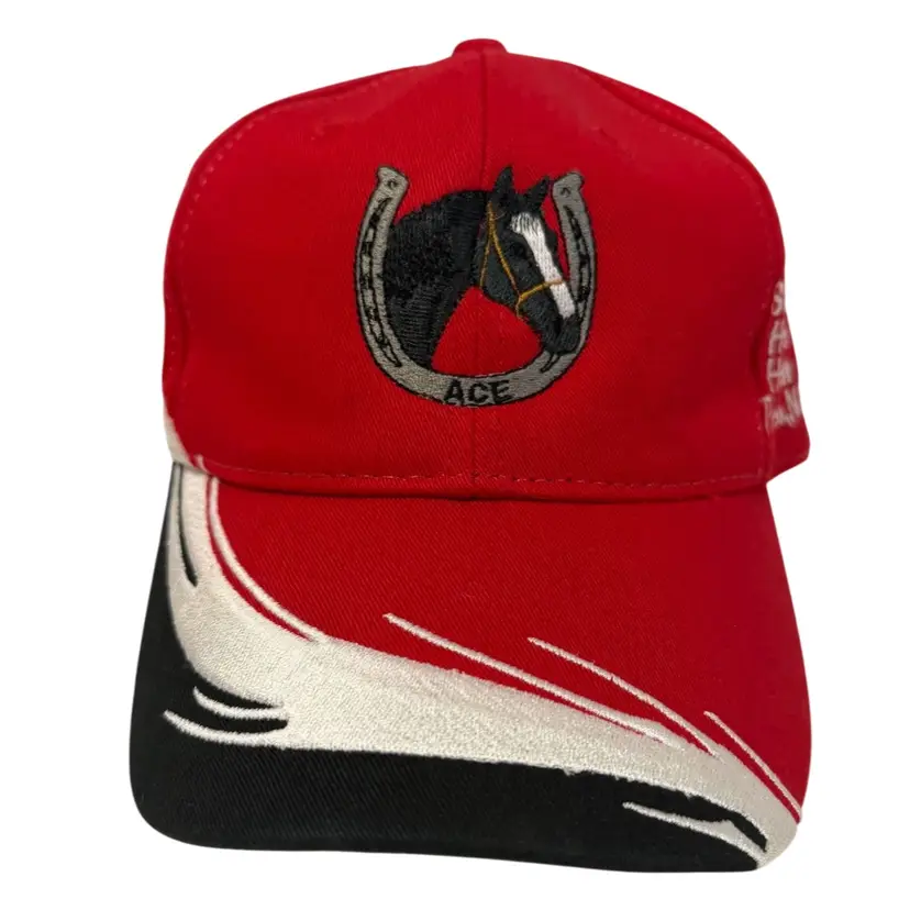 NEOT The Stewart Horse Haven Ace Horseshoe Red & Black Embroidered Adjustable Hat is a versatile accessory suitable for both men and women. Made from a blend of polyester, cotton, and acrylic, this baseball cap features a solid red color with a unique horse-themed design. The adjustable feature ensures a comfortable and personalized fit, making it perfect for travel, casual outings, or workwear during any season. Made from durable canvas fabric, this hat combines style and practicality for any horse lover or outdoor enthusiast.