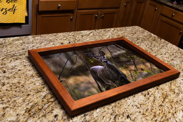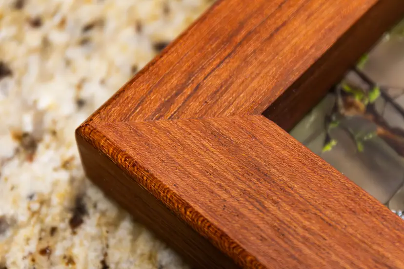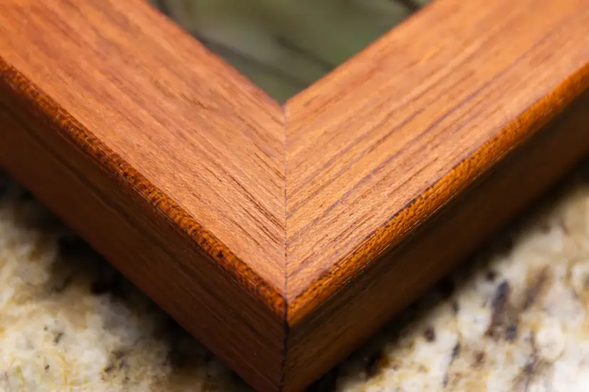 Every print is carefully presented in a handcrafted hardwood frame made by the artist. The frames are built from solid Brazilian Cherry (Jatoba) using only structural tenons. There is no particle board like a standard framing shop. There are no fasteners, brad nails, or V nails.
