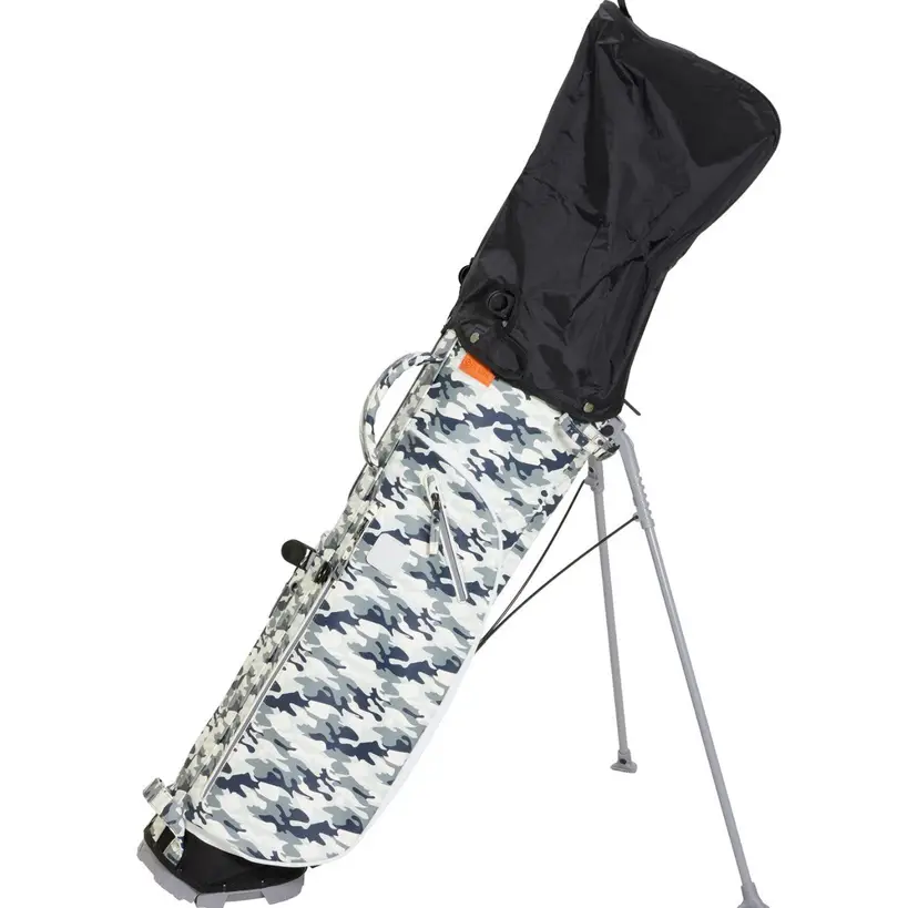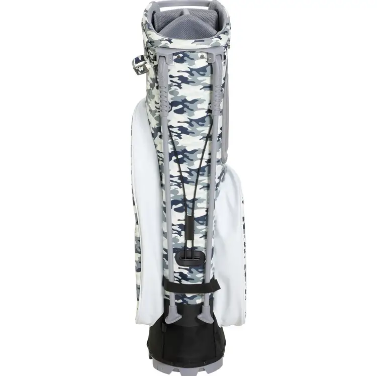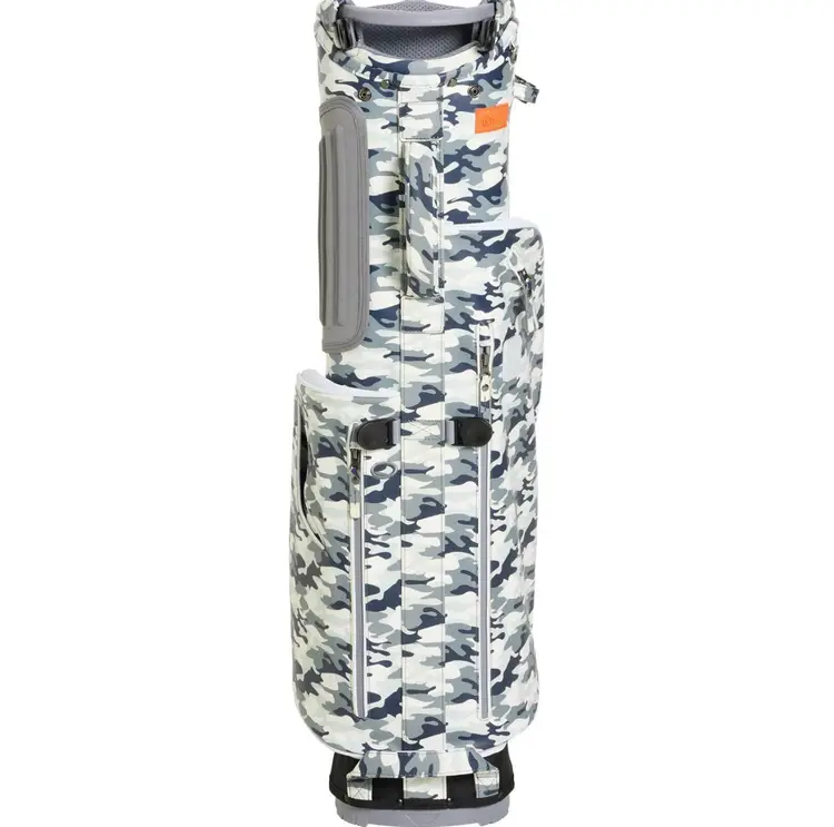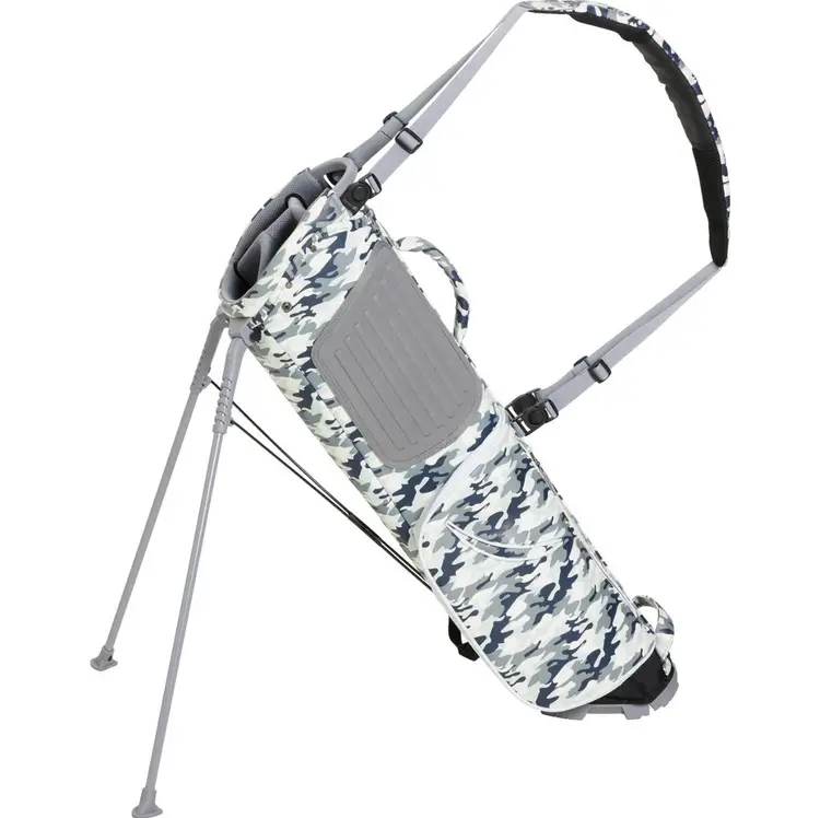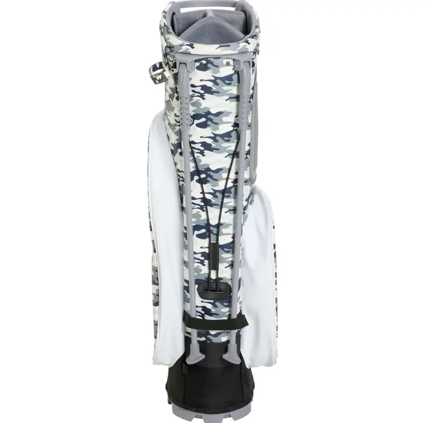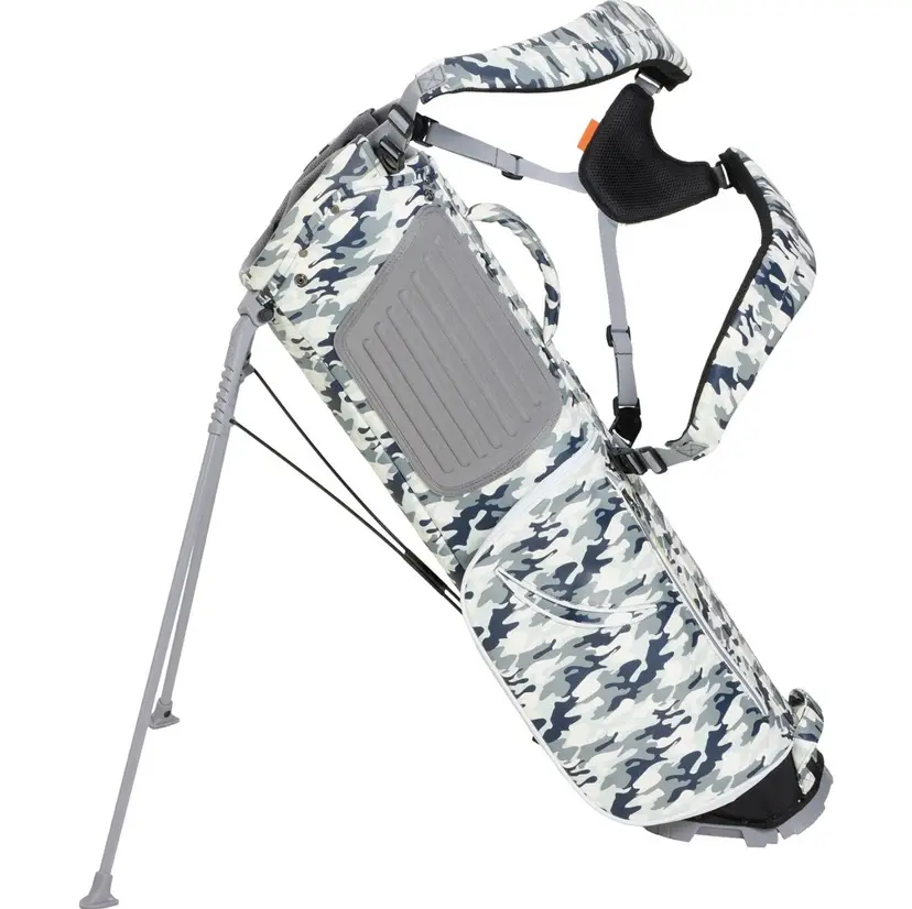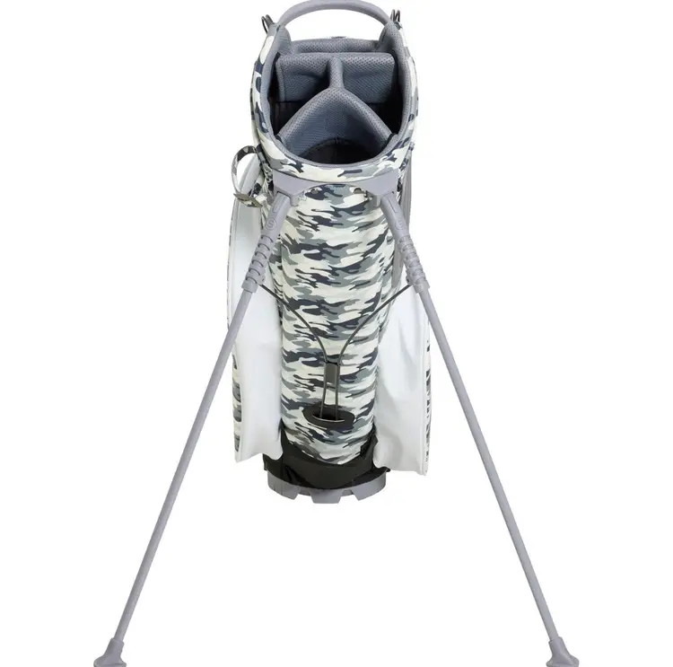Imported The Stitch Golf SL2 Fadeaway Stand Golf Bag is a medium-sized bag with a 4-way divider system, making it easy to organize and protect your golf clubs. Made of durable leather material, this camo bag features a zip closure, durable padded construction, and is water resistant. It includes 4 pockets for storage, a dual strap system for easy carrying, and a convenient carry handle. Designed for men who enjoy playing golf, this lightweight bag from Stitch is perfect for transporting your clubs with style and functionality.