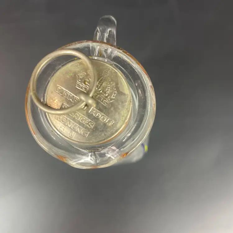 This glass cruet is the perfect vessel for your olive oil or vinegar, bringing a touch of Swedish sophistication to your salad dressing game. It's not just a bottle, it's a work of art that even has its own currency – a coin-stopper. Talk about cashing in on style!