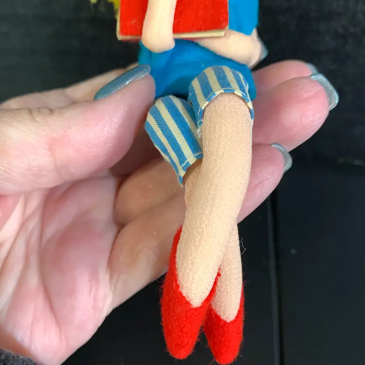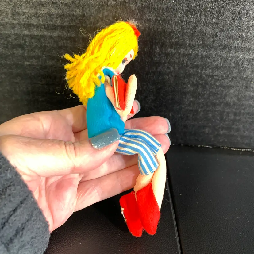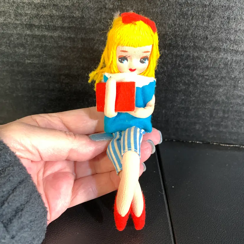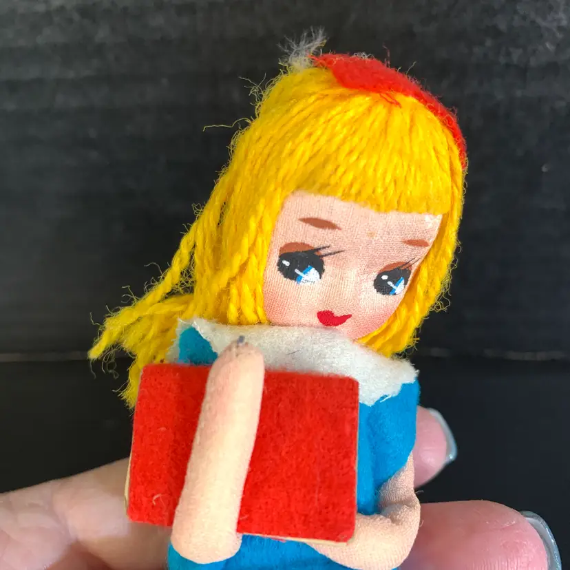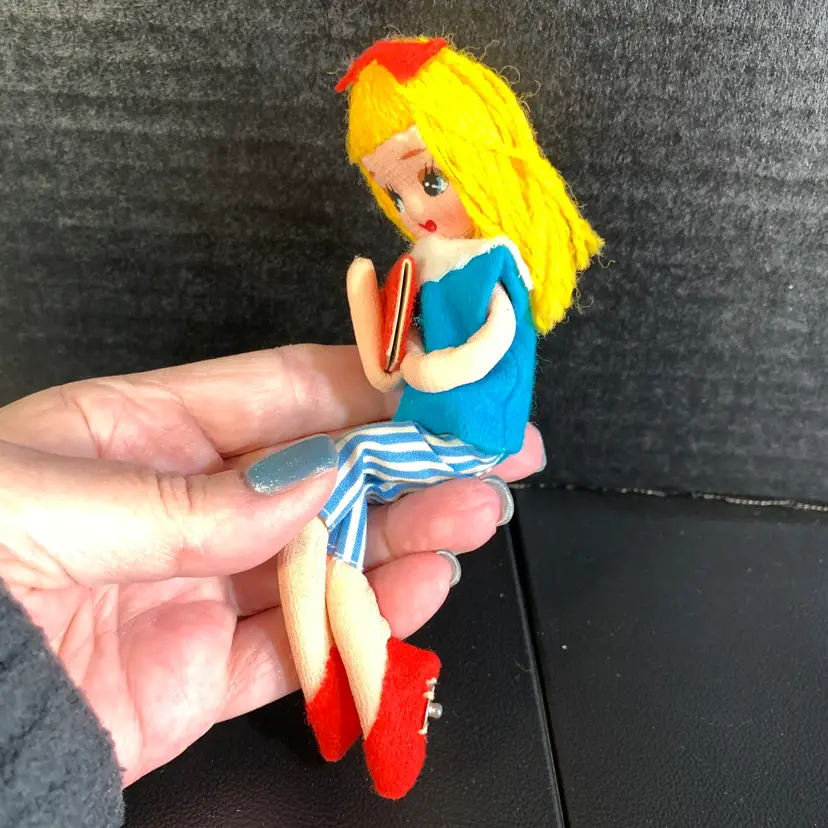 This is in great condition! Her hair is a little messy. Measures 1 3/4 inches across, 2 inches wide and 6 inches tall. Weighs 1 ounces. If the actual postage ends up being less than what you paid, you will be refunded for anything over one dollar.