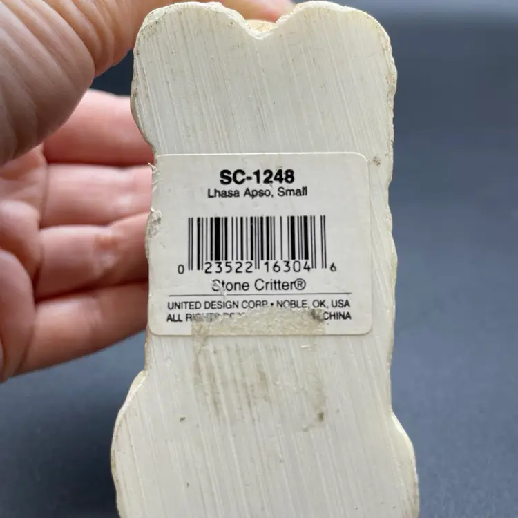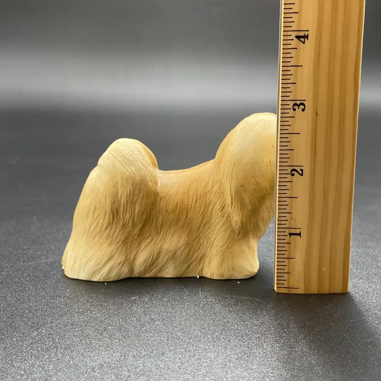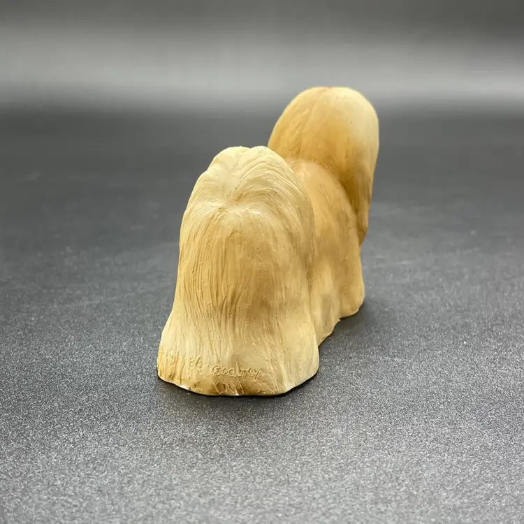 This is a vintage 1986 Stone Critters Lhasa Apso figurine. Made in USA. Signed on hind side. Measures approximately 3” tall x 4” long. There is a little wear as shown in pictures. No major flaws.