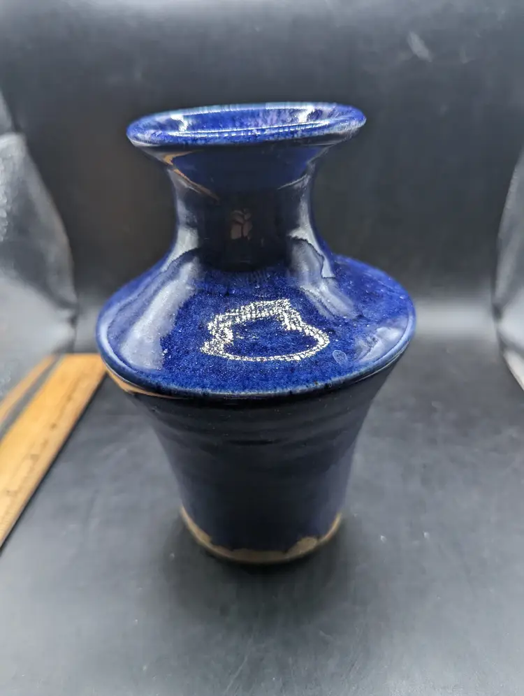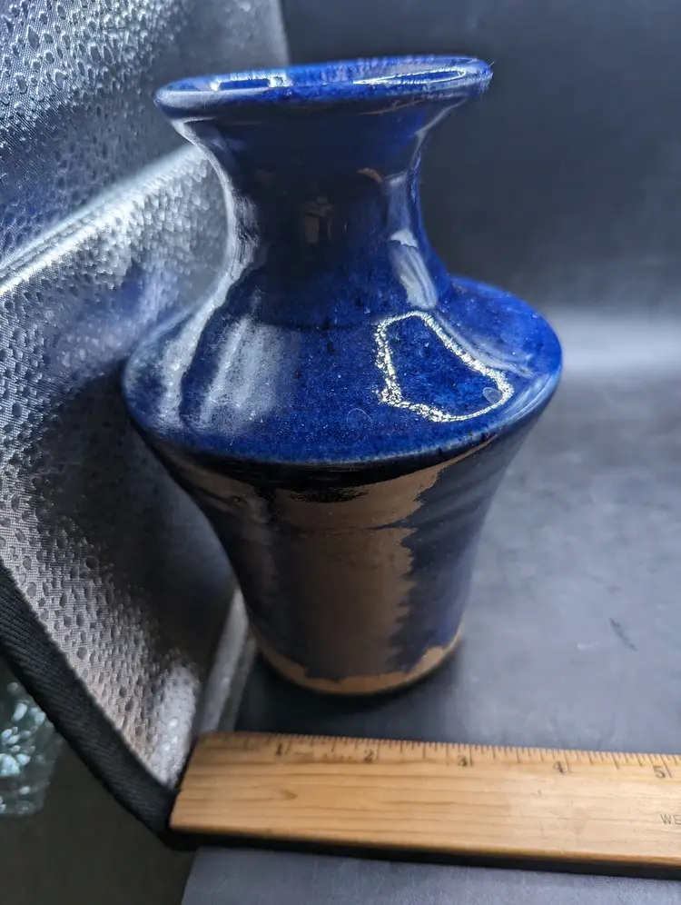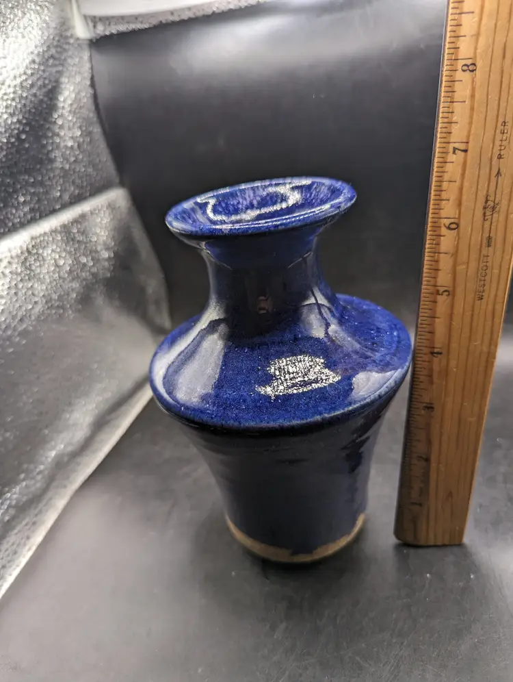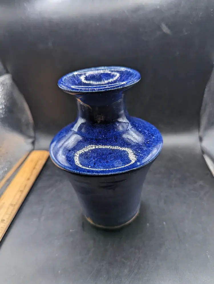This is a lovely Stoneware Pottery Cobalt Blue Vase. There is no maker's mark that I see. Please see all pictures for condition and measurements.
