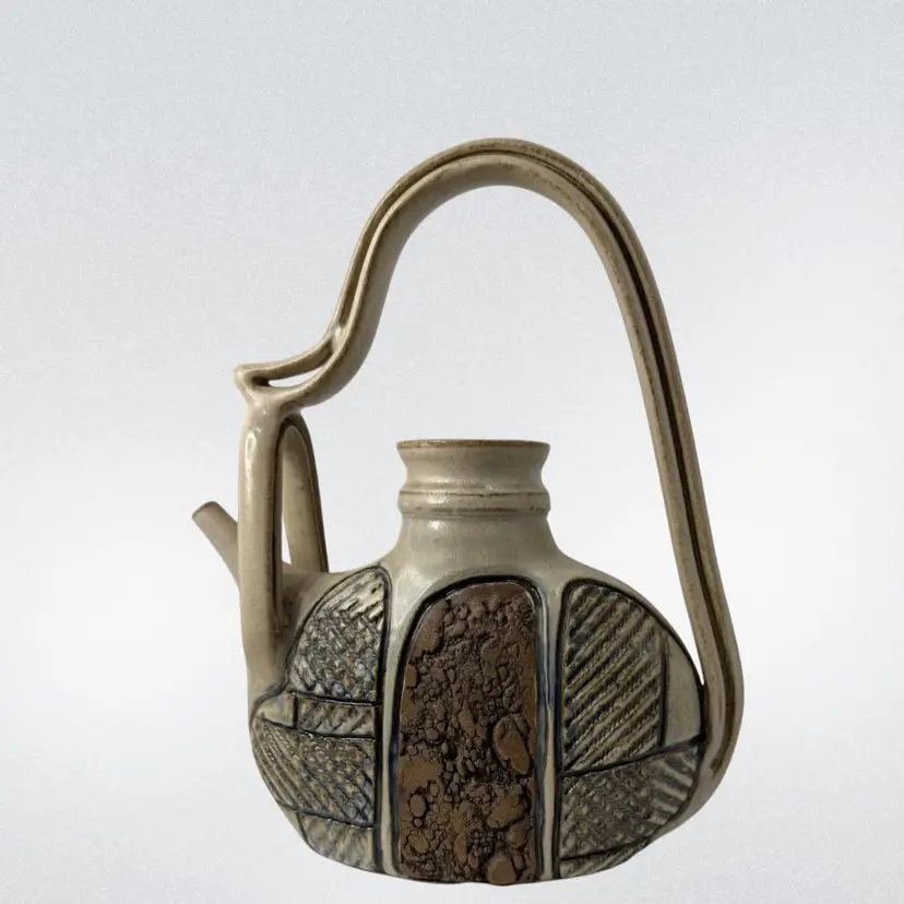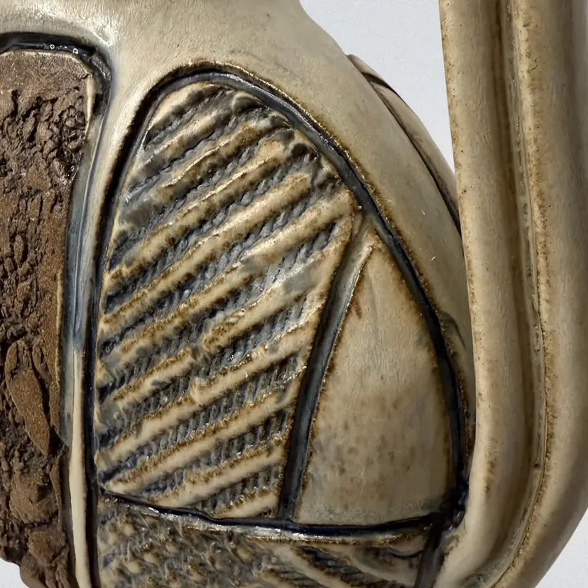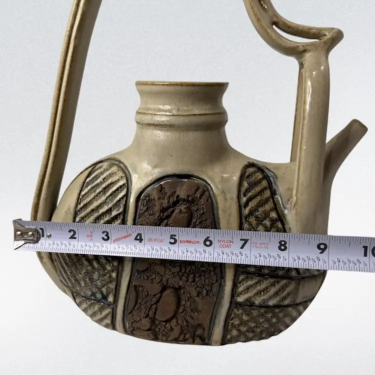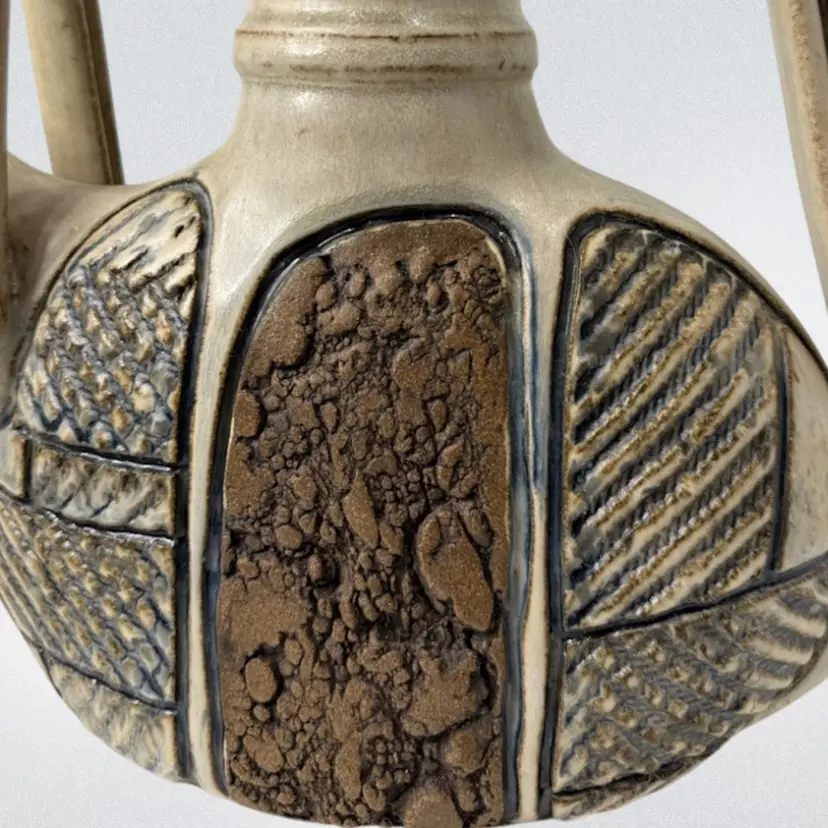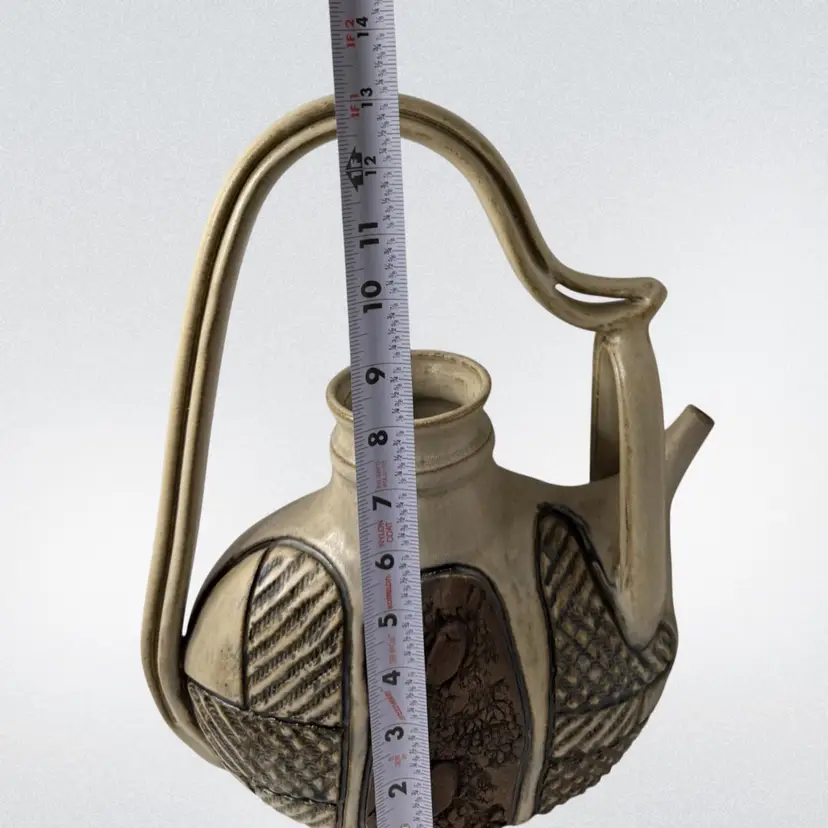 Stunning studio pottery water jug. Beautifully crafted with detailed textures and design. Condition: No condition issues noted. Measurements: Approximately 13” T x 11” W x 3.5” W. Please see pictures for condition and measurements as they are part of the description. N9-11 Thank you for looking!
