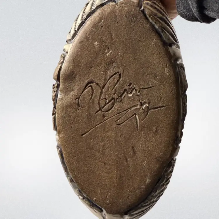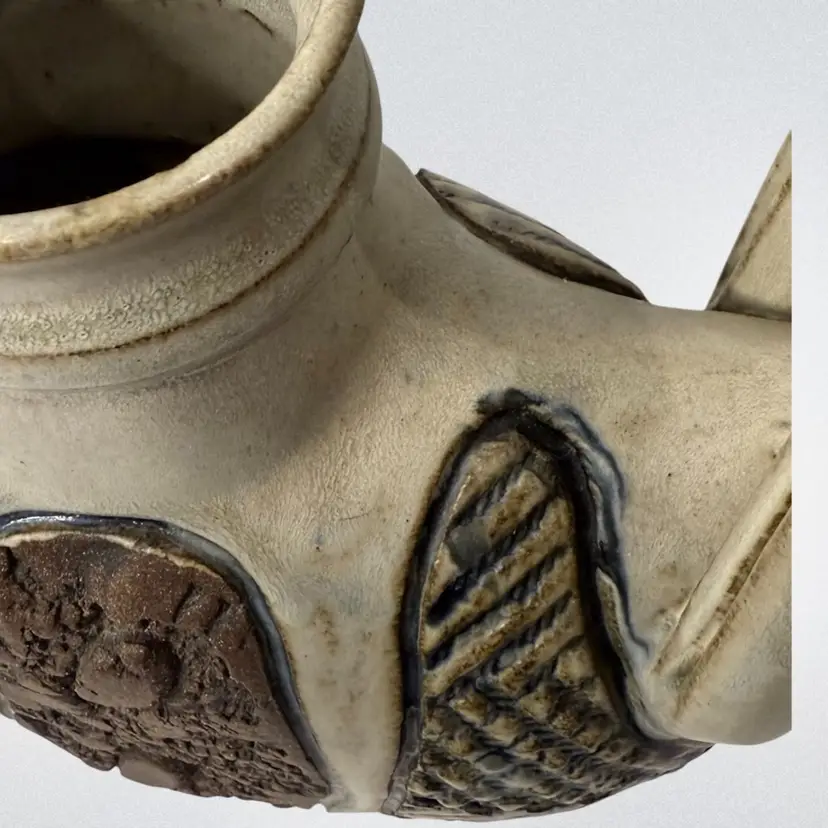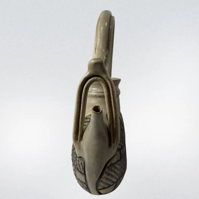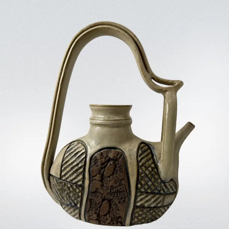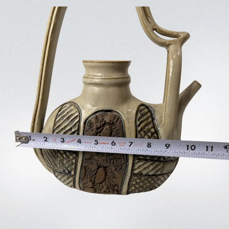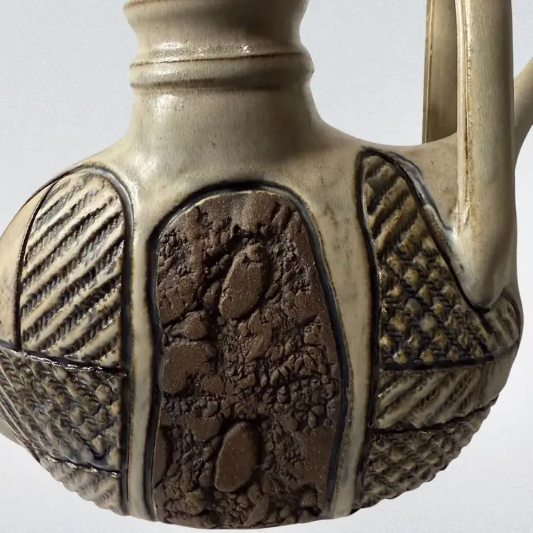 Stunning studio pottery water jug. Beautifully crafted with detailed textures and design. Condition: No condition issues noted. Measurements: Approximately 13” T x 11” W x 3.5” W. Please see pictures for condition and measurements as they are part of the description. N9-11 Thank you for looking!